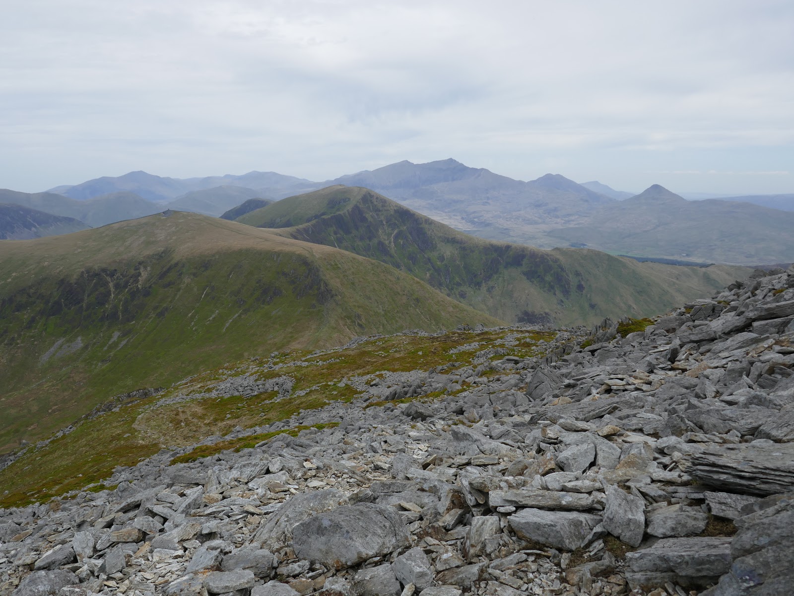 Summits: Y Garn (633m), Mynydd Drws-y-coed (695m), Trum y Ddysgl (709m), Mynydd Tal-y-mignedd (653m), Craig Cwm Silyn (734m)