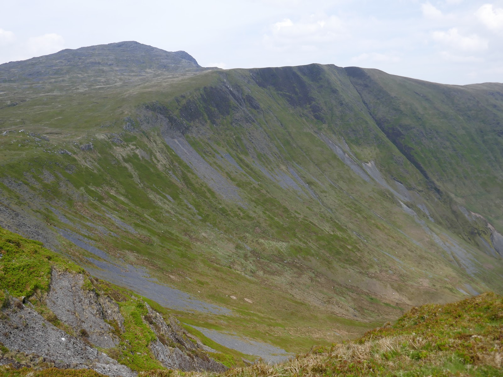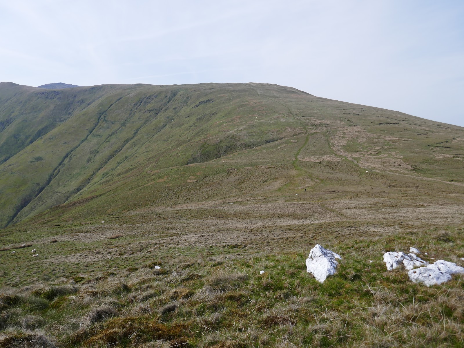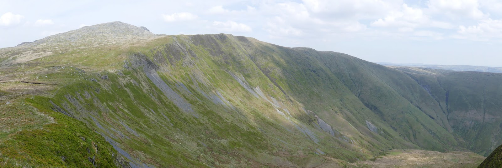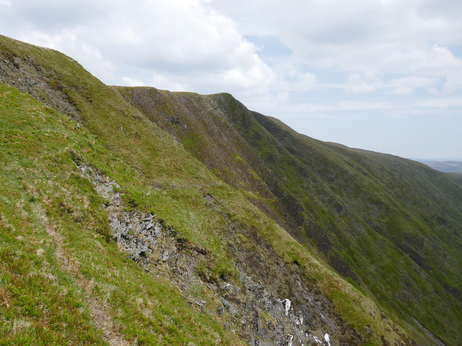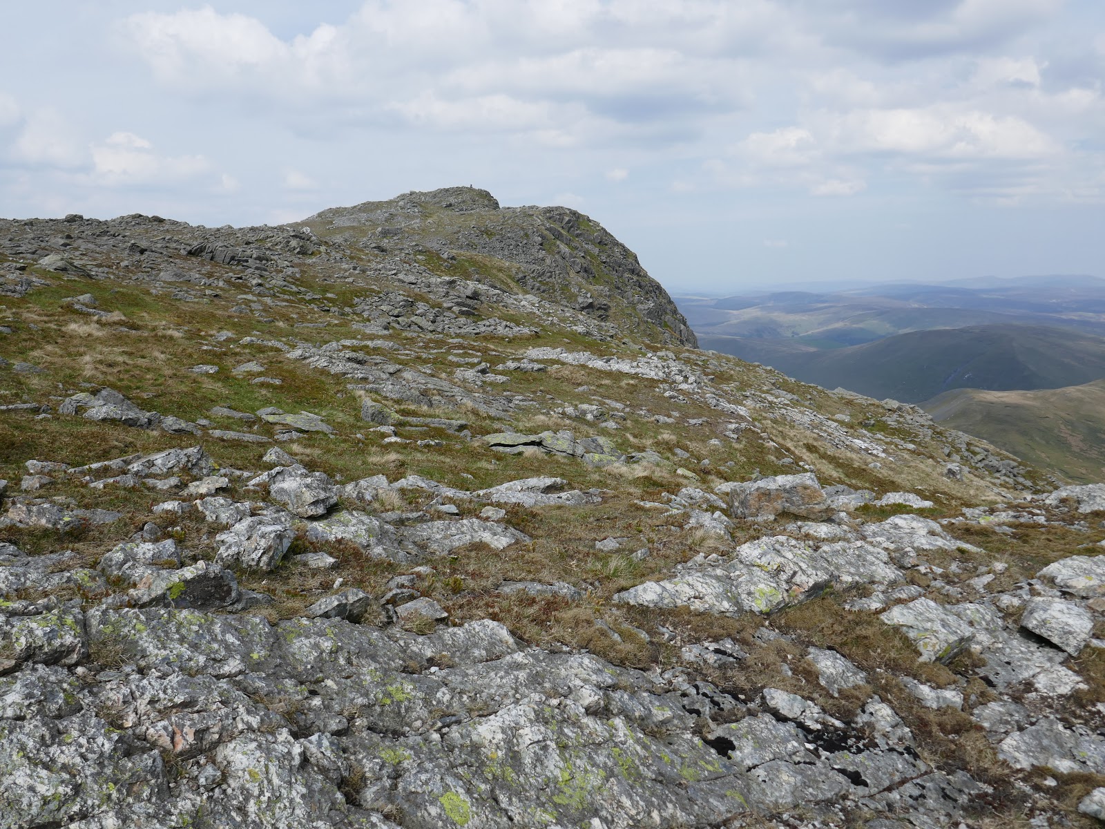 The Arans comprise of a high, broad, grassy ridge with smooth slopes to the north and steep crags to the south. The principal summits are formed of large rocky outcrops, dotted along the ridge. The downside of this is that it is a challenge to form a large circular walk of these peaks, instead and out-and-back approach is necessary unless you have two cars.