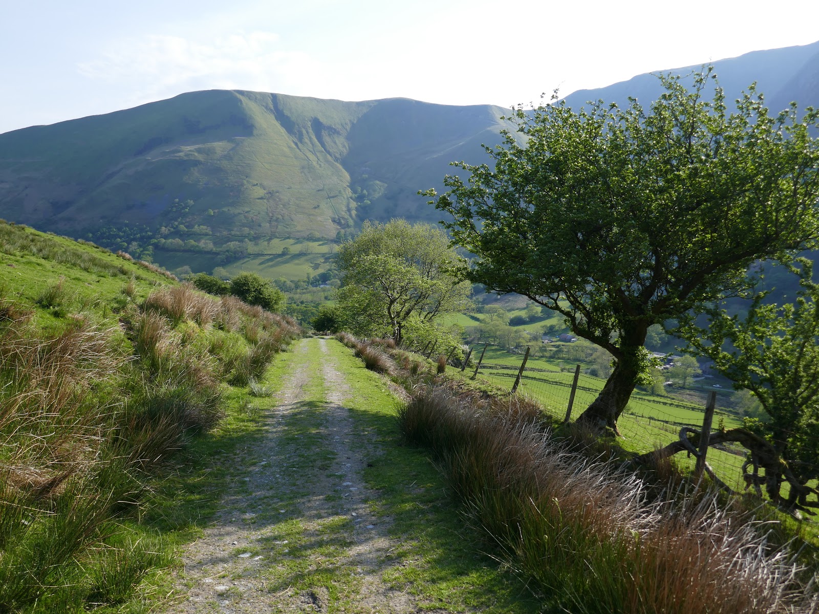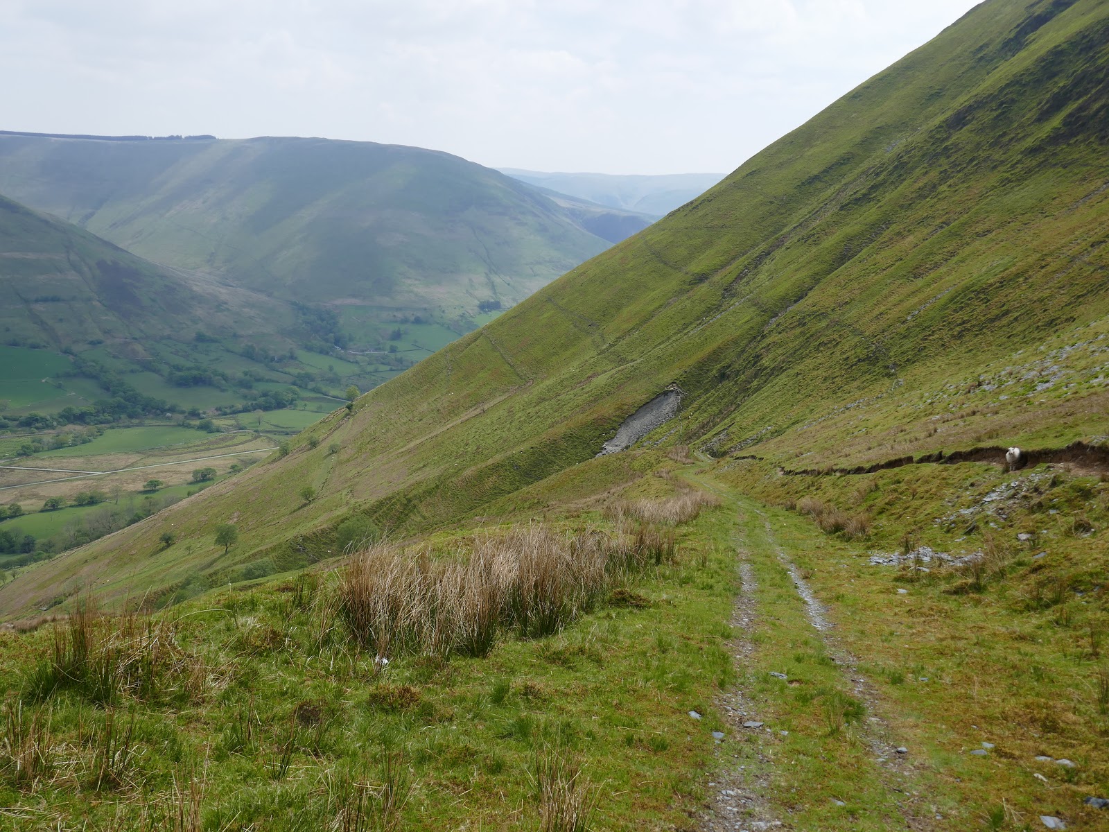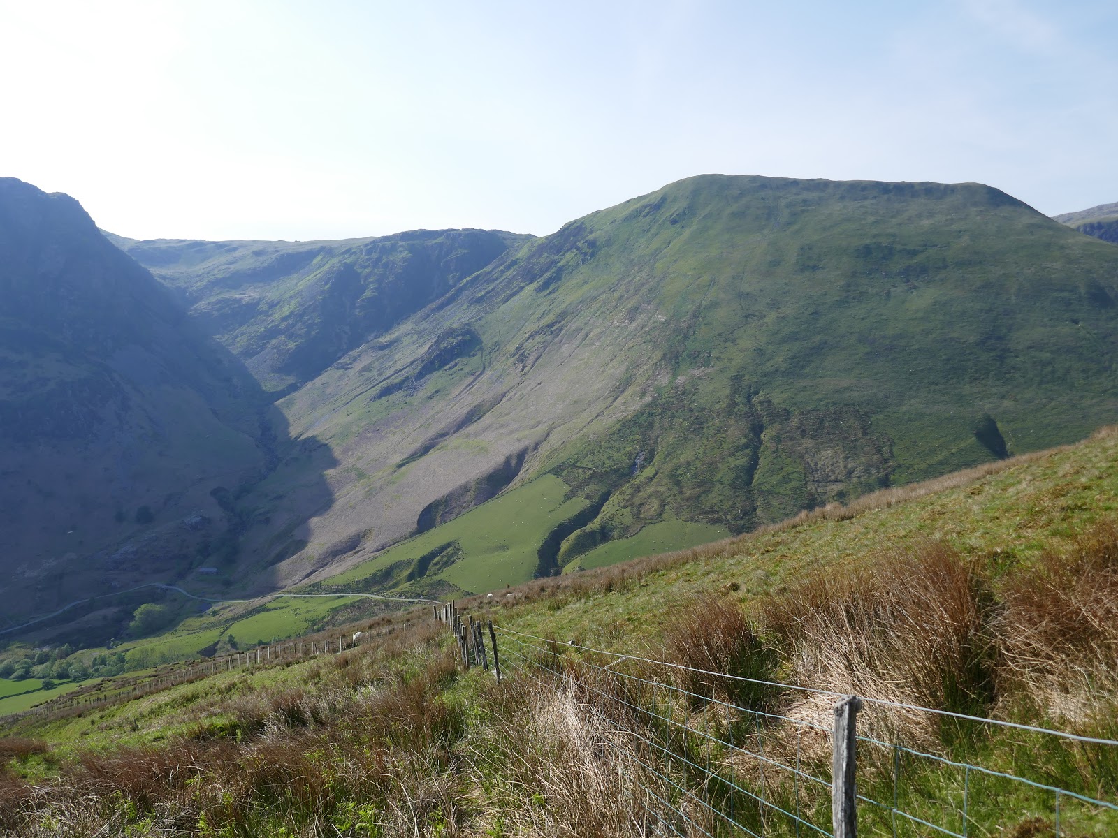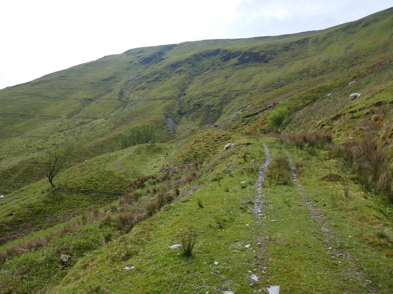 The direct descent was pretty punishing but quickly got me back down to the valley bottom – or close to it at least. Keeping to the Access Land, I managed to negotiate final fence to get onto a path – one that descends from the hills high above. I still managed to take a wrong turn late in the day, ending up in a field with a gathering of curious sheep.