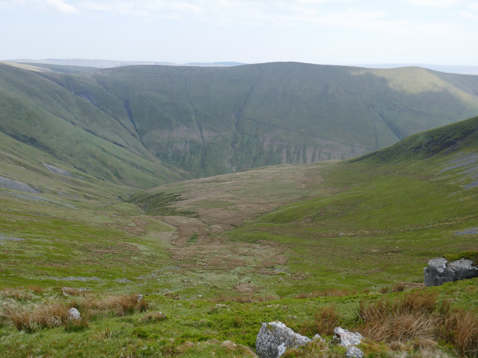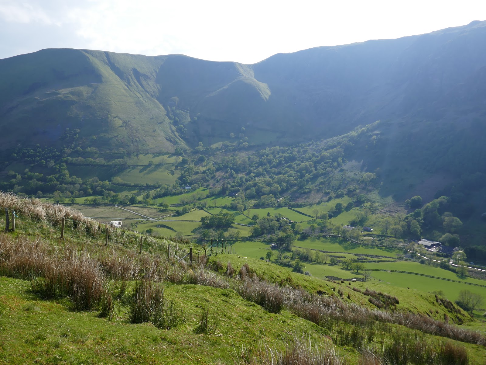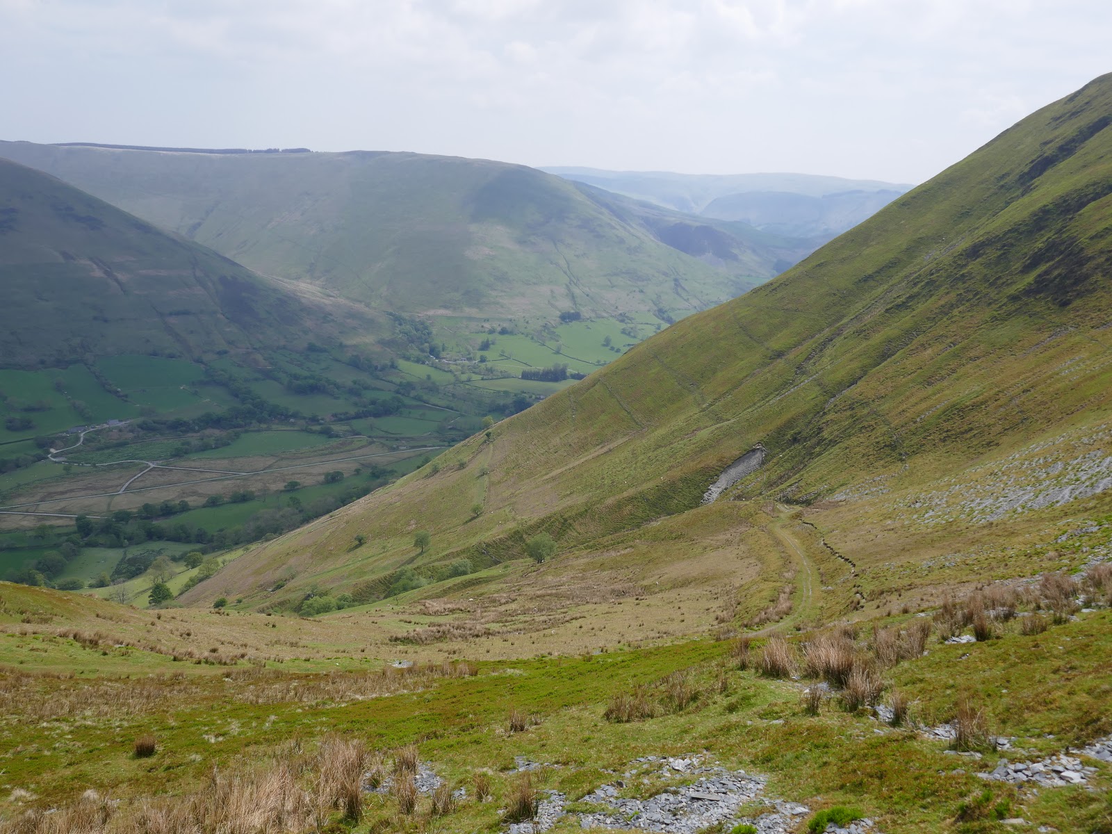 The direct descent was pretty punishing but quickly got me back down to the valley bottom – or close to it at least. Keeping to the Access Land, I managed to negotiate final fence to get onto a path – one that descends from the hills high above. I still managed to take a wrong turn late in the day, ending up in a field with a gathering of curious sheep.