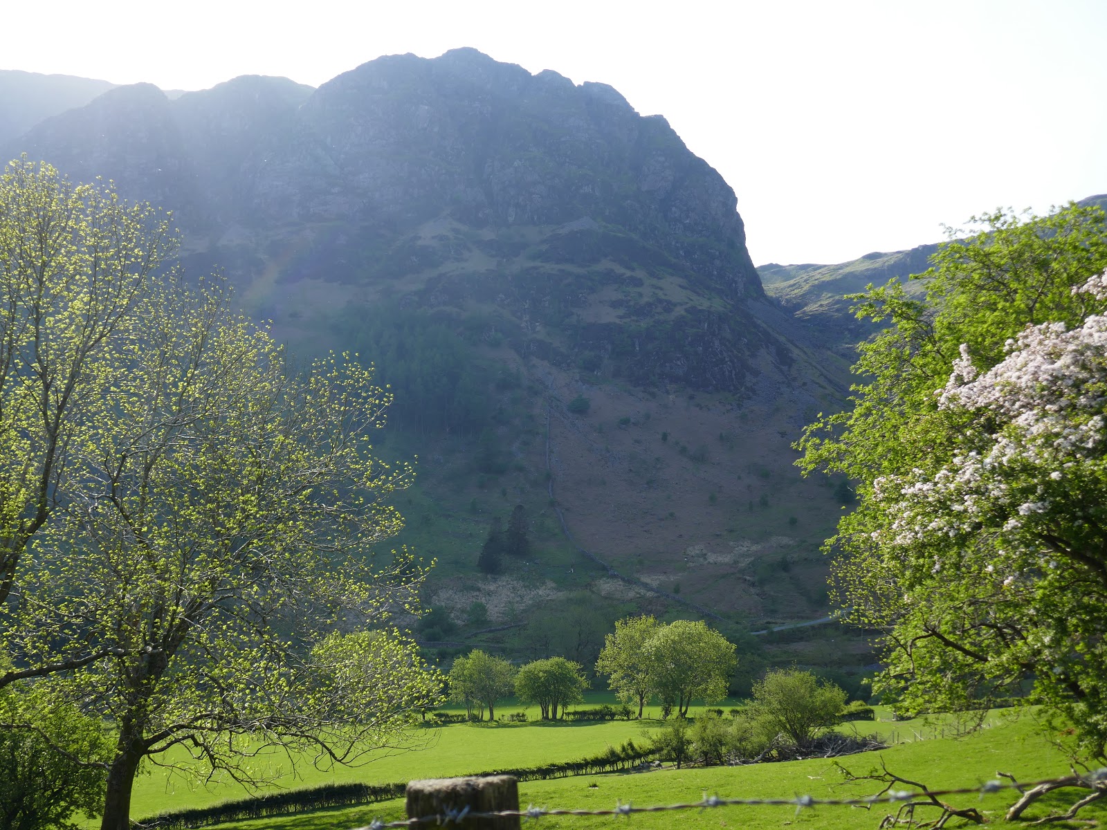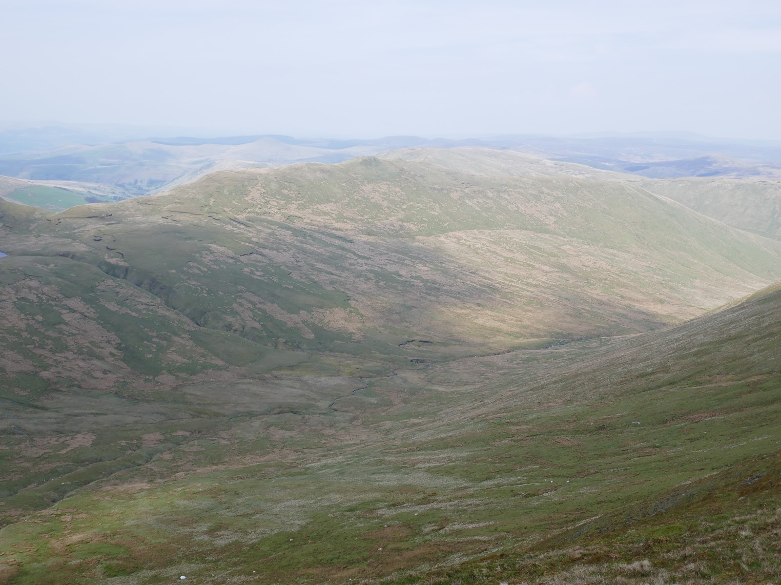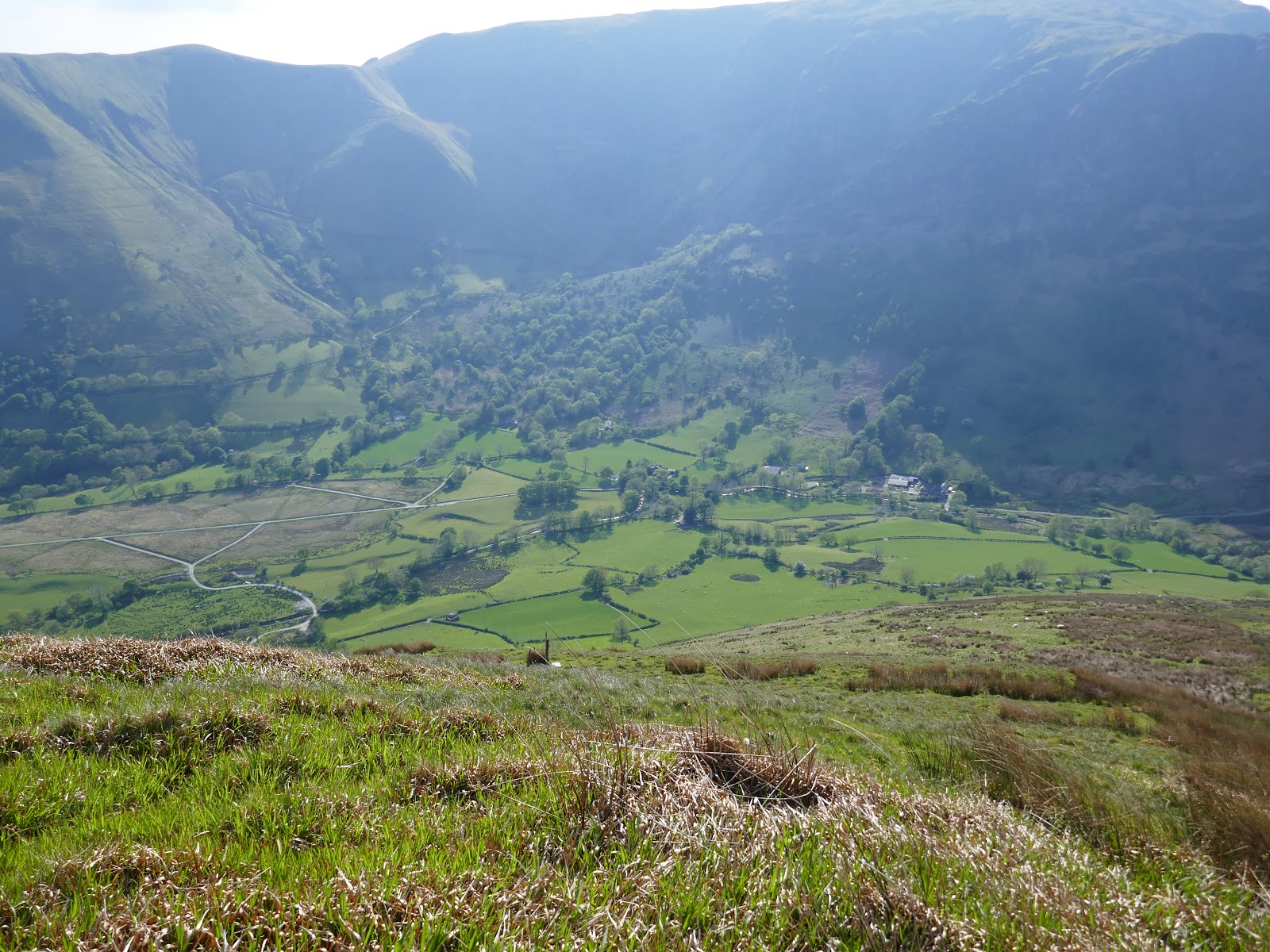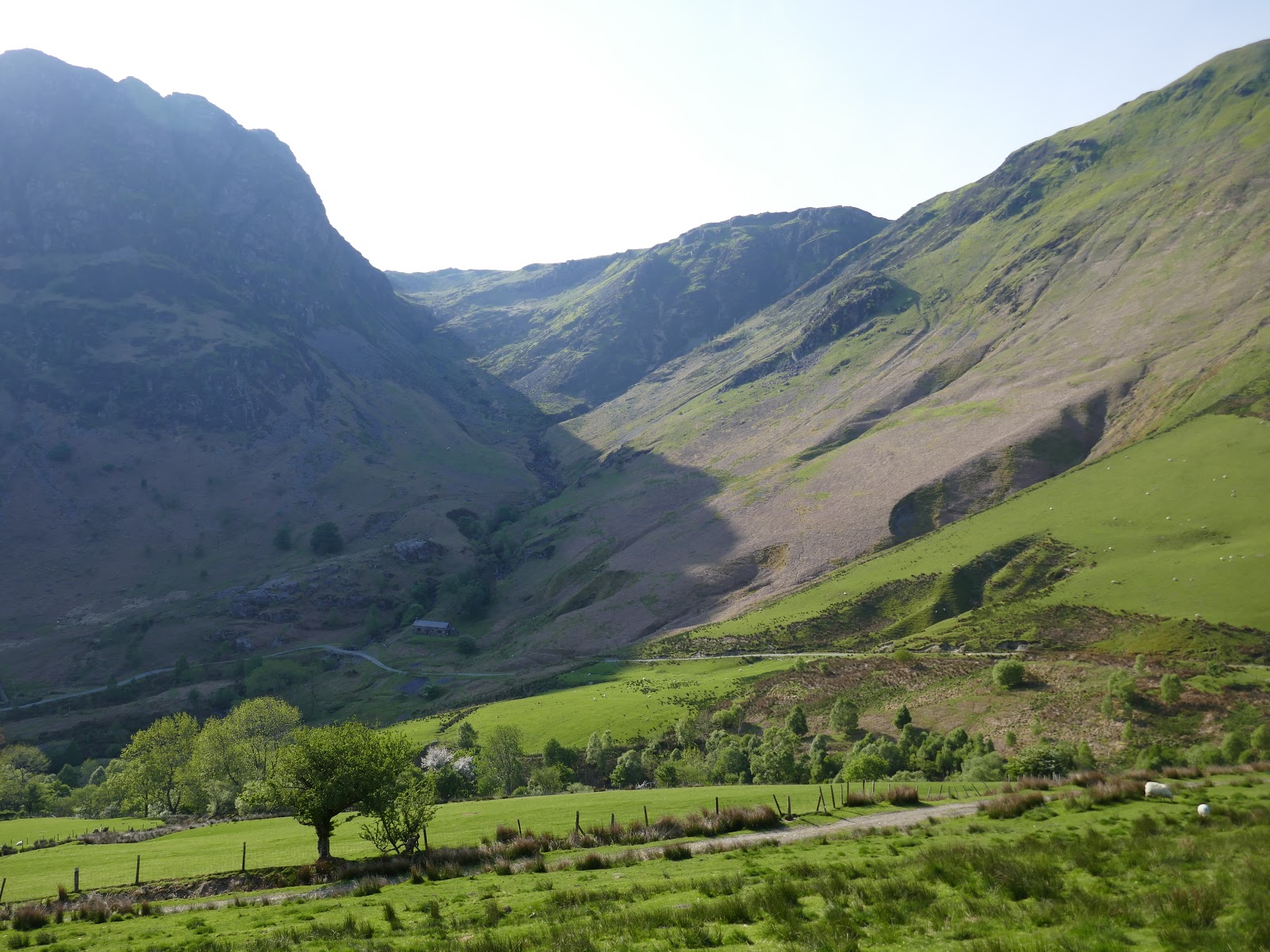 The direct descent was pretty punishing but quickly got me back down to the valley bottom – or close to it at least. Keeping to the Access Land, I managed to negotiate final fence to get onto a path – one that descends from the hills high above. I still managed to take a wrong turn late in the day, ending up in a field with a gathering of curious sheep.