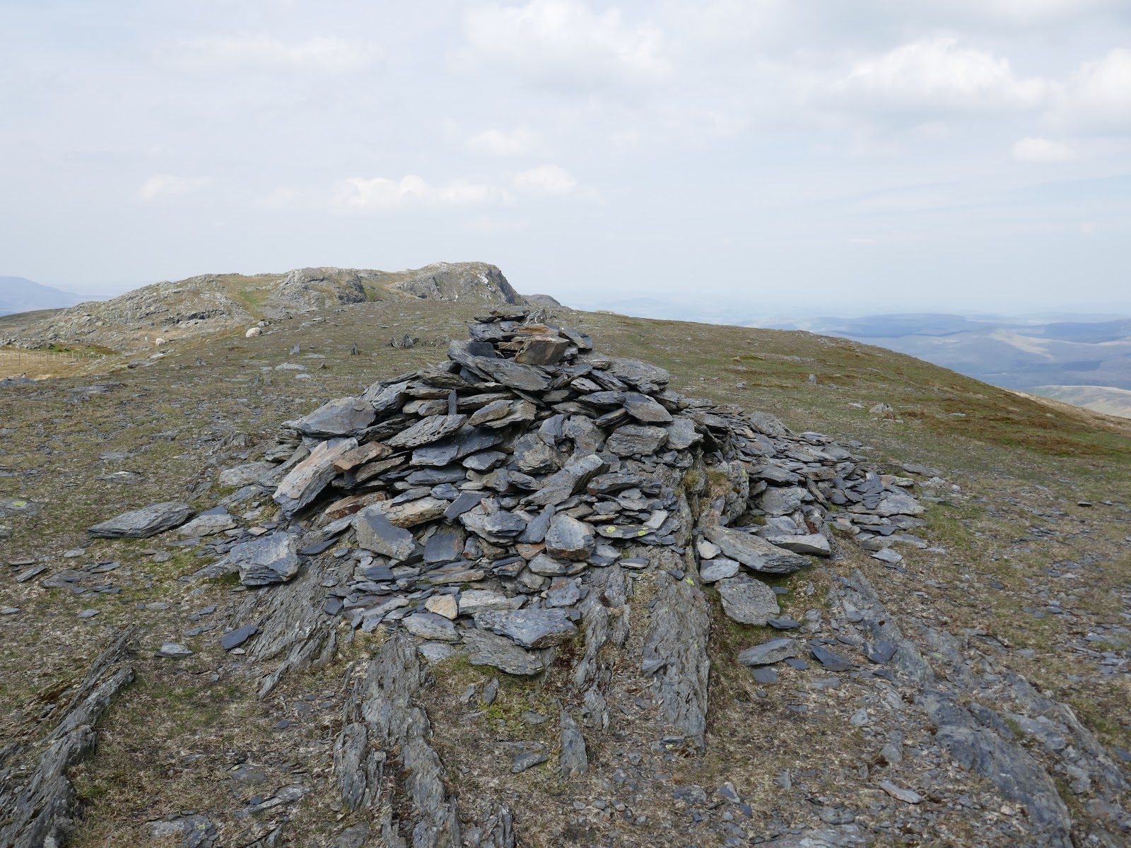 Aside from an initial descent from Aran Fawddy, the ridge is generally undulating and has the bonus of two named summits – the first of which being the phonetically challenging Erw y Ddafad-ddu. While the mountain, in general, is not particularly exciting, it does sport a rectangular cairn on its flank which has a nice view of Aran Fawddy.