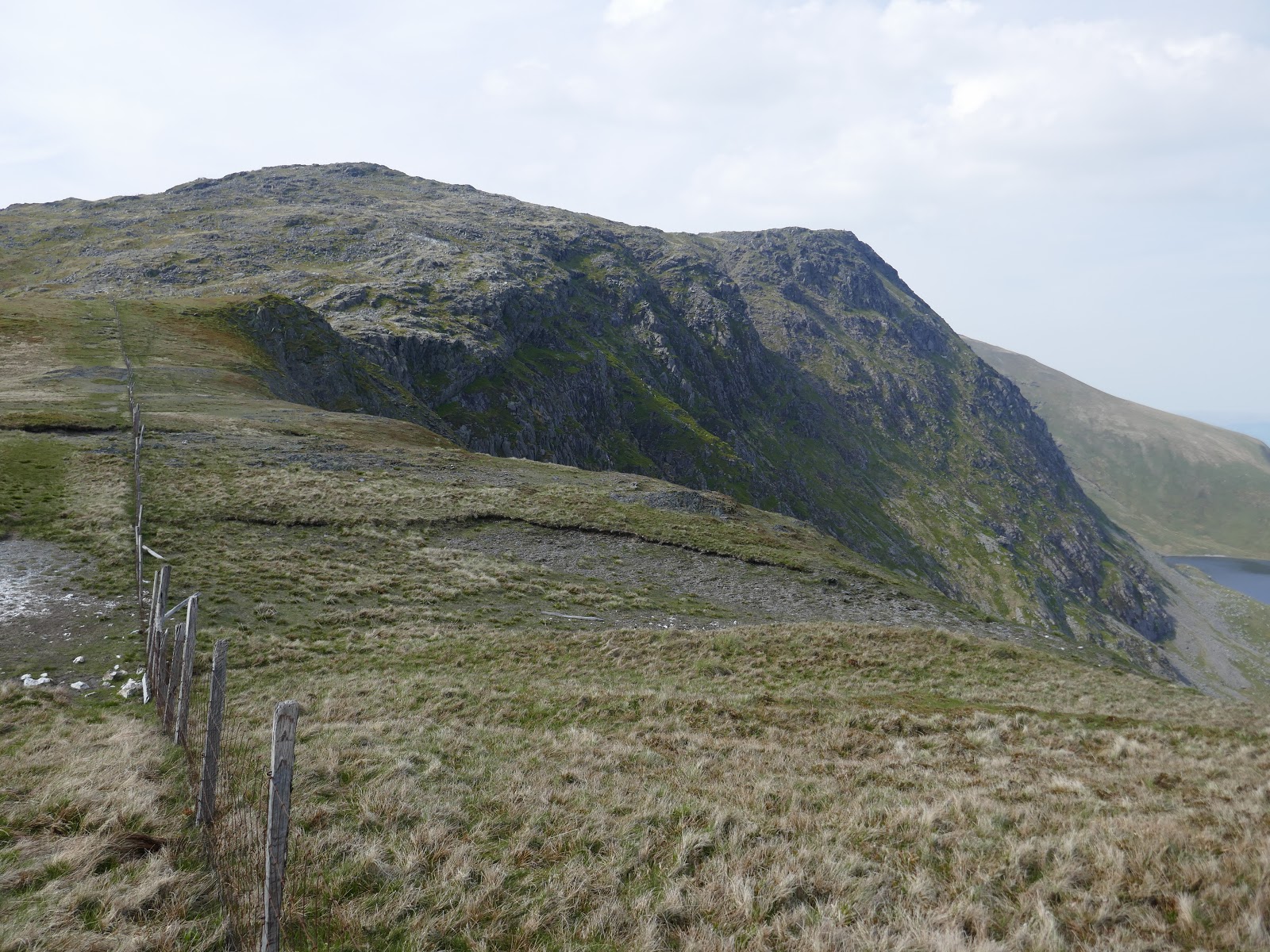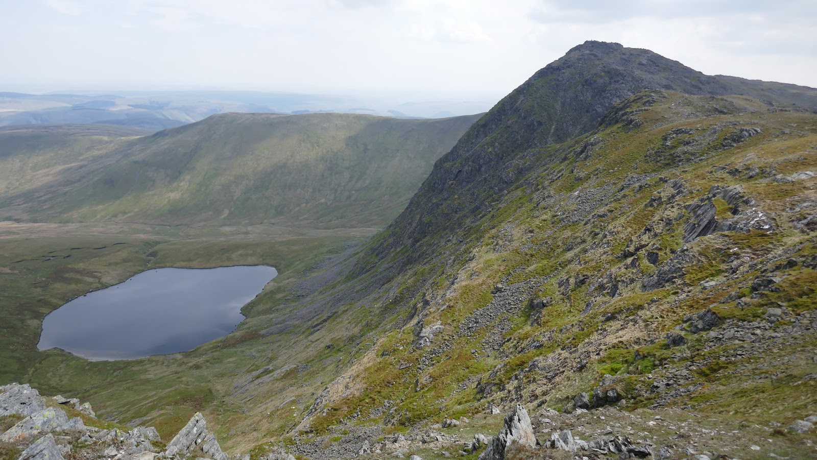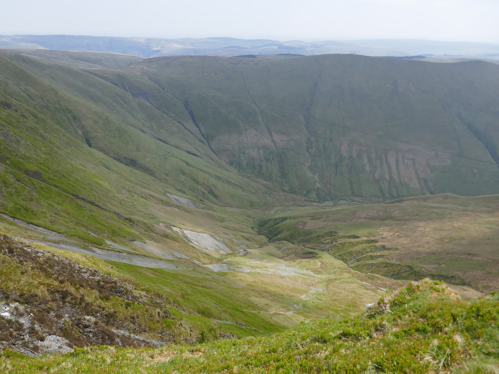 After two previous days walking I was starting to flag a little at this point. Ahead is a short descent before more climbing along the rim of Hengwm towards Drws Bach – a top I’d visit later on. Here, the craggy face of Aran Fawddy finally comes into view with the impressive 1,000ft cliffs falling to the small lake of Creiglyn Dyfi.