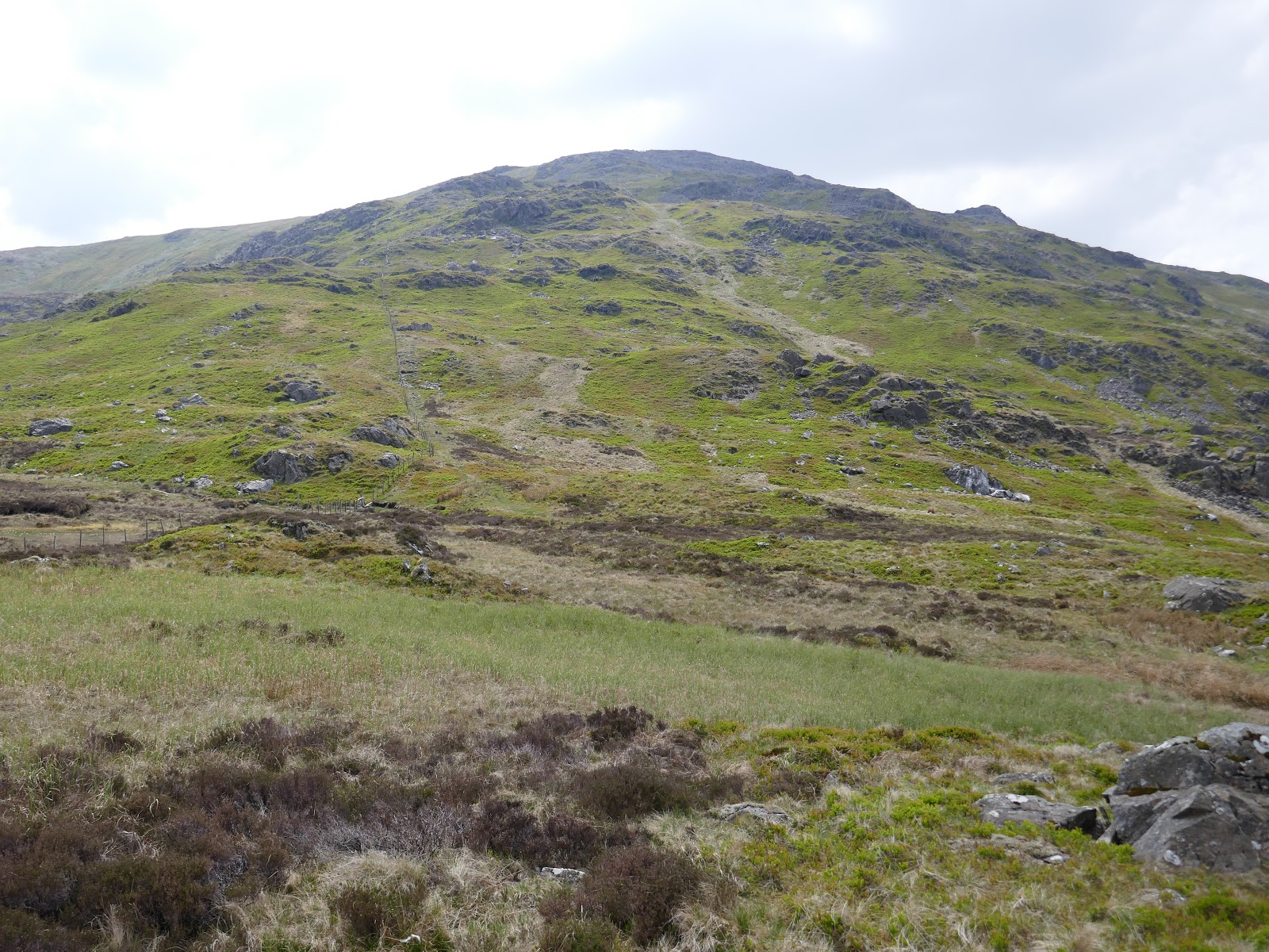 I mention this as my initial ascent would be along a well-engineered track, presumably an old mine road, which snakes its way up the steep slopes of Cwm yr Ychen. Initially, the climb is easy enough but it becomes increasingly steeper as it gains height. It was a hot morning and forecasts were for a very warm day.