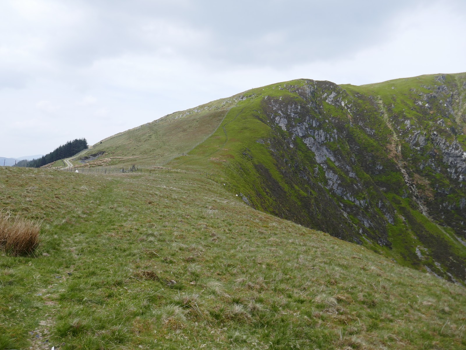 A surprisingly chilly wind was whipping across the top of the hill as I made my way along the ridge, unsure as to exactly how I was to get back to the car in the valley below. In the end, I reached the end of the ridge and followed a fence almost directly down the fantastically steep hillside. The drama of Hengwm was being picked out in the late afternoon sunshine.