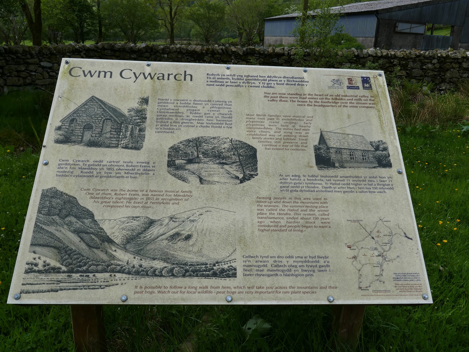 Cwm Cywarch, with its dark, towering crags was home to a lead mining industry until the end of the 19th Century. The lead workings gave rise to a mining village and works. While the mining company office remains, other mining buildings have been incorporated into local farms, while most others, including the village itself, have vanished.