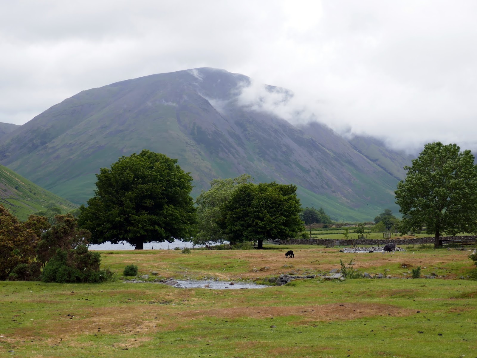 The walk back to Wasdale Head is largely along the road but it is fairly quiet and offers ample opportunities to leave it to admire the views. We passed the Greendale junction, where the iconic view of Great Gable is, well, it most iconic. Passing beneath the immense slopes of Yewbarrow is also impressive. The only downside of the route at this time of day is the number of minibuses arriving with the Three Peaks crowds.