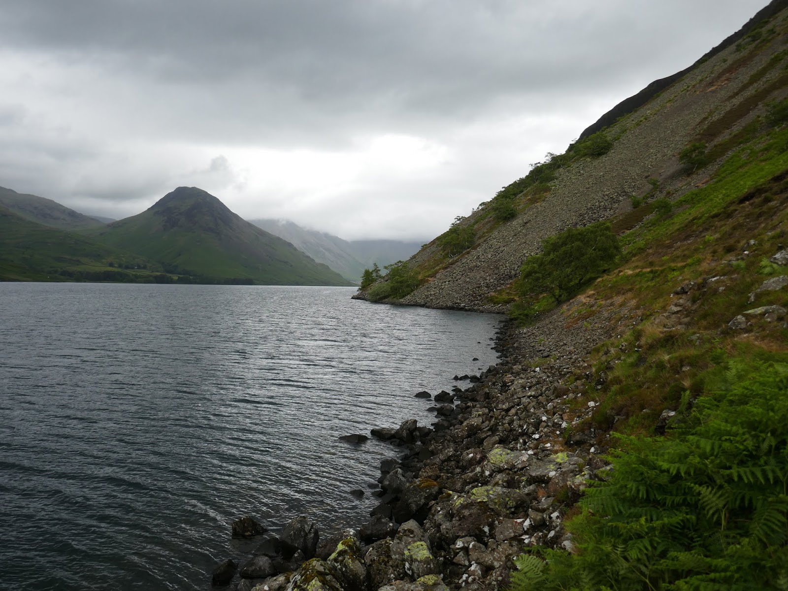 Perhaps its most defining feature are the immense Screes – a 2,000ft curtain of rocks and boulders that tumble into the lake from the fells above. A path crosses the foot of the screes allowing you to complete a grand circuit of the lake as we did on a damp summer afternoon.