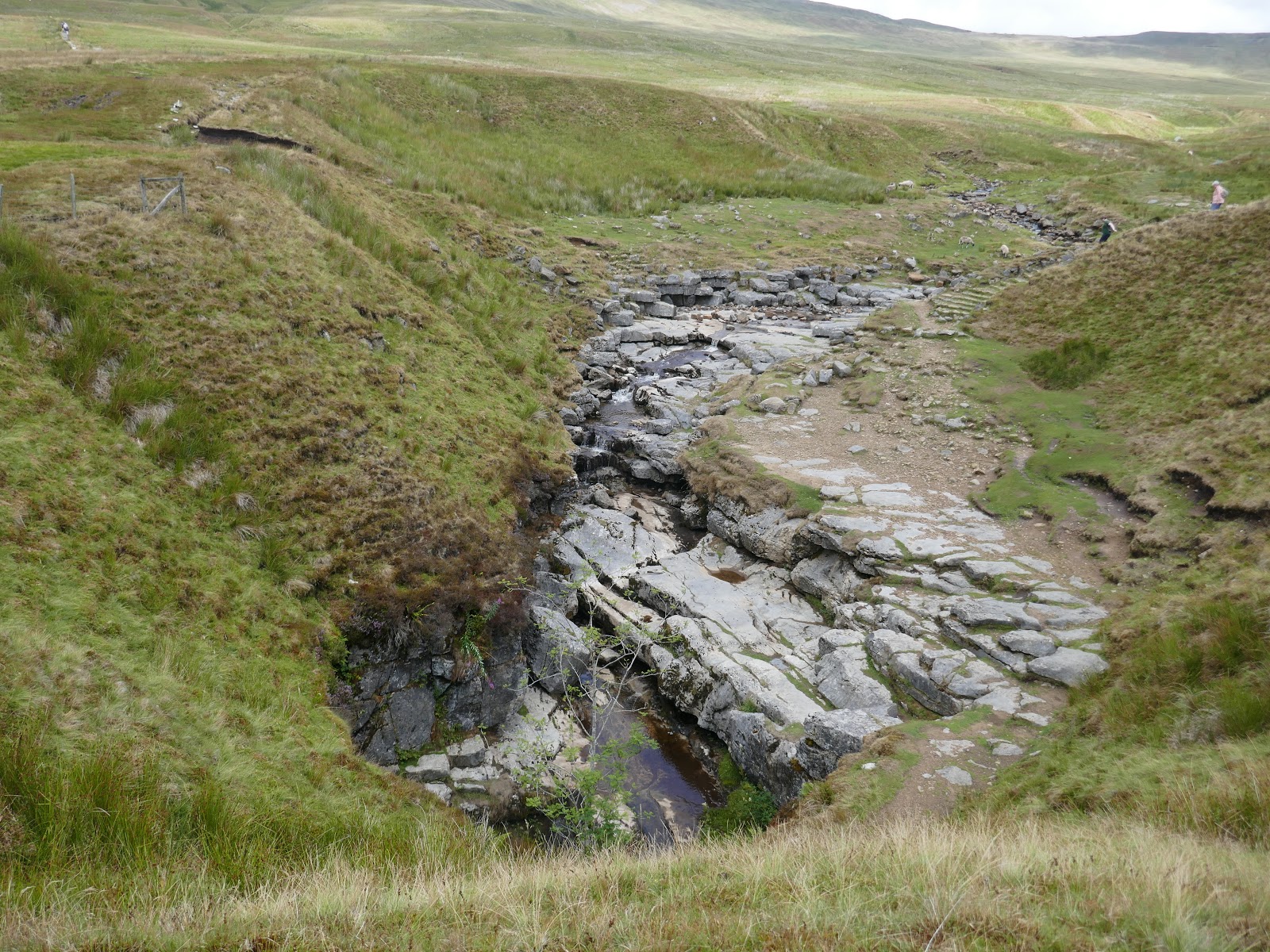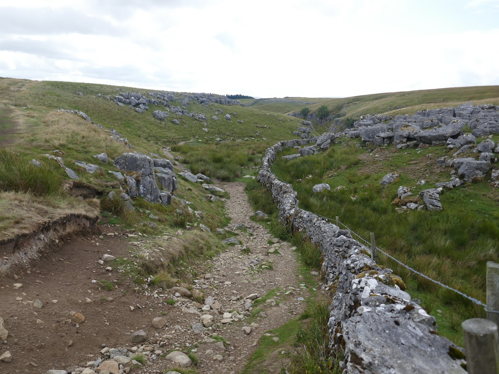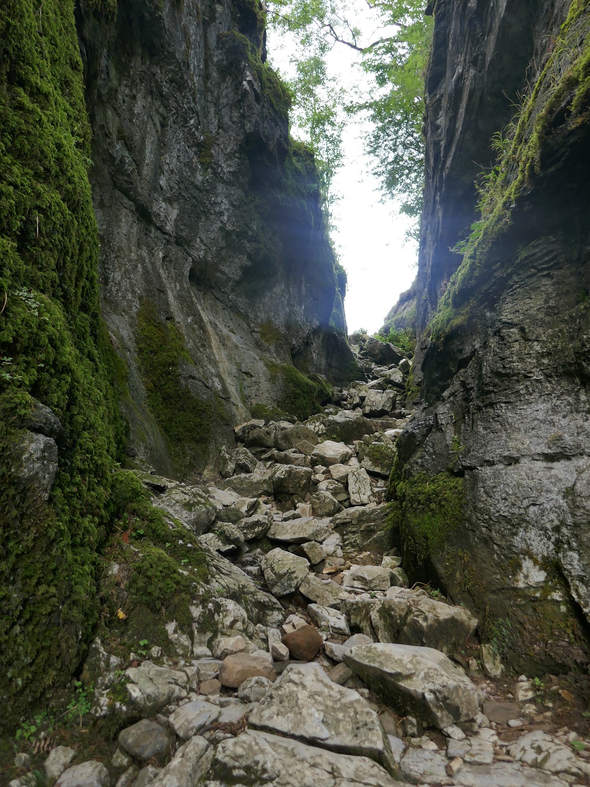 The ravine narrows towards the end and a few stepped rocks allow you to climb out the other side. The next port of call would be Gaping Gill.