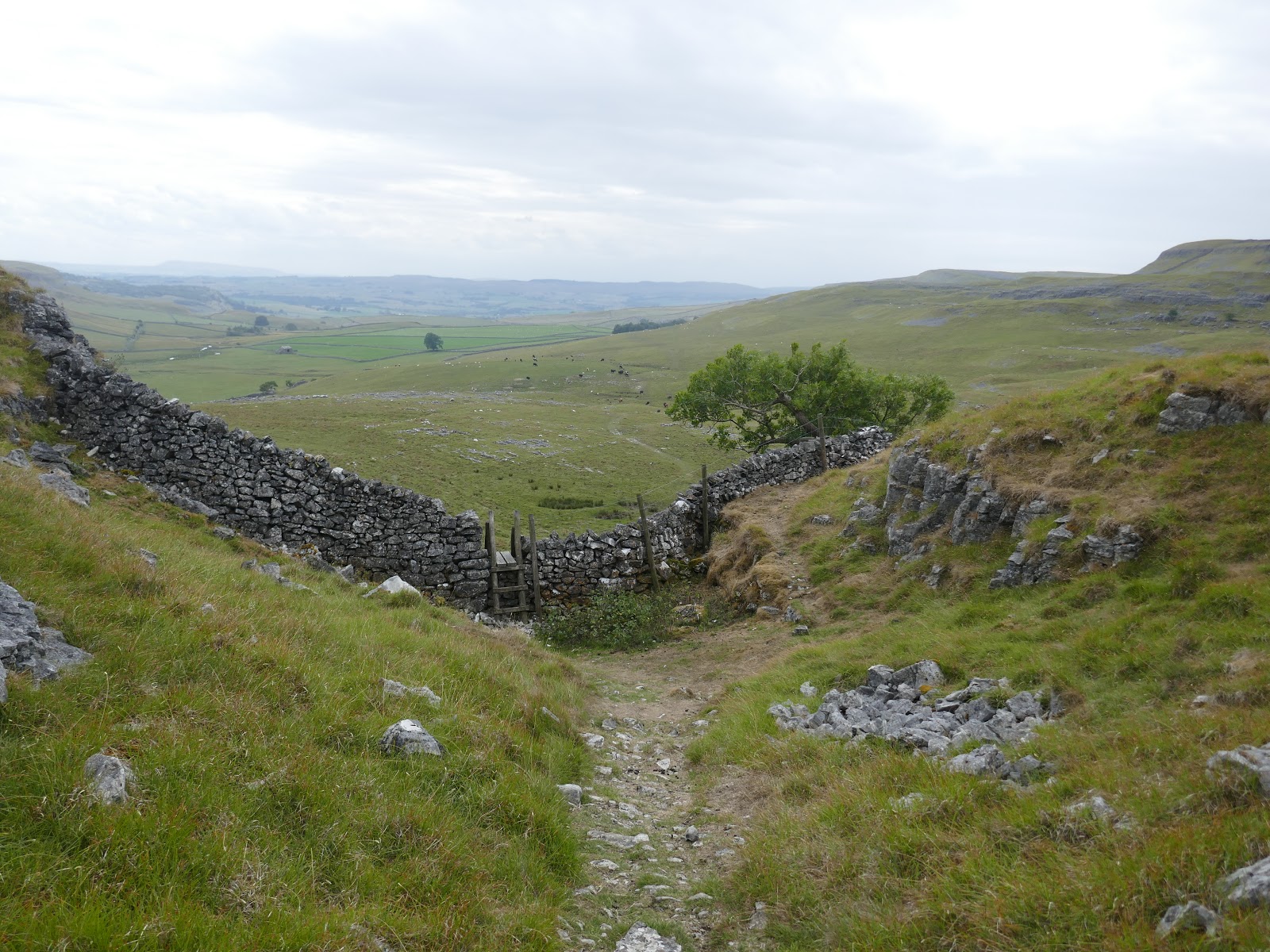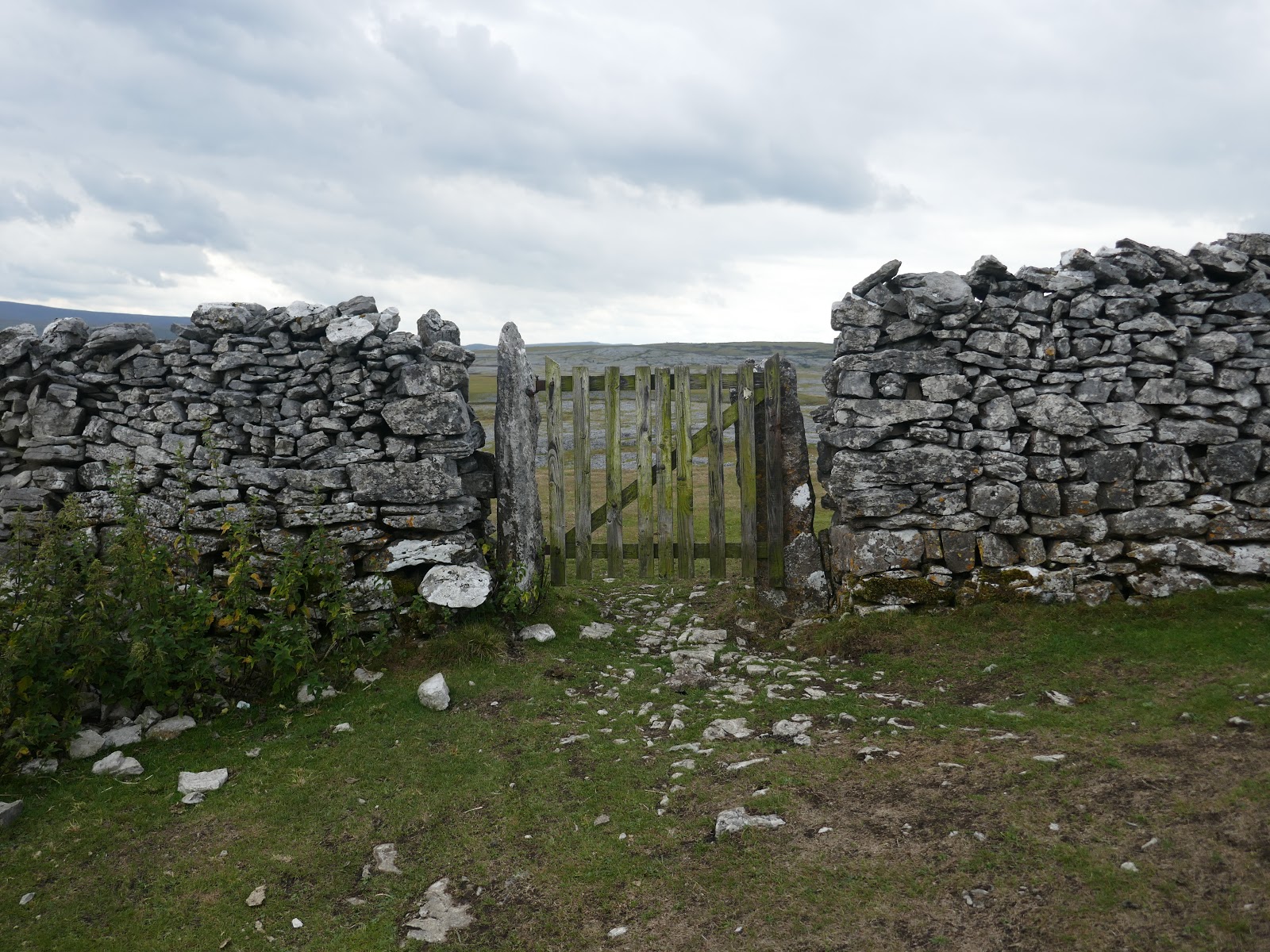 The path enters Sulber, the beginnings of the large area of limestone pavement between Ingleborough and Pen y Ghent. At a crossing of paths, I left the main Three Peaks route and made my way to Sulber Gate, an old gate nestled in amongst the drystone walls. Passing through the gate leads down to Thieves Moss and Moughton Scars.