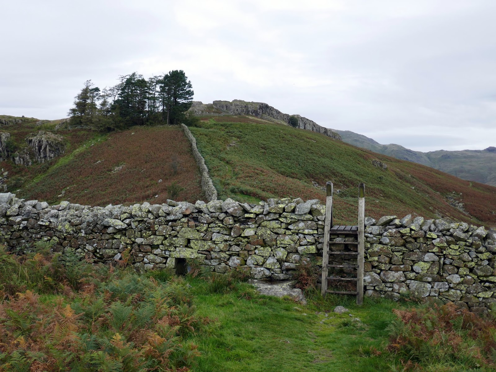 The path climbs along a stony track before I took a deviation to begin climbing Low Pike, following the famous drystone wall which runs along the crest of the ridge all the way to Hart Crag. While it makes navigation easy, it blocks much of the view to the west. Some minor but interesting scrambling is required at Low and High Brock Crags before the final pull up to Low Pike.