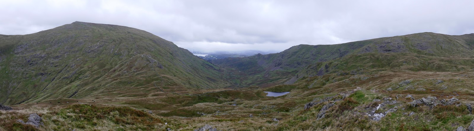 Retracing my steps slightly, a steep descend drops you into Bakestones Moss between Dove Crag and Little Hart Crag at the head of Scandale. The prospect of a sunny afternoon was becoming more and more diminished as the ominous grey skies swept over Coniston and Windermere, heading in my direction. At Little Hart Crag I opted to avoid a prolonged lunch break, instead donning my waterproofs in preparation.