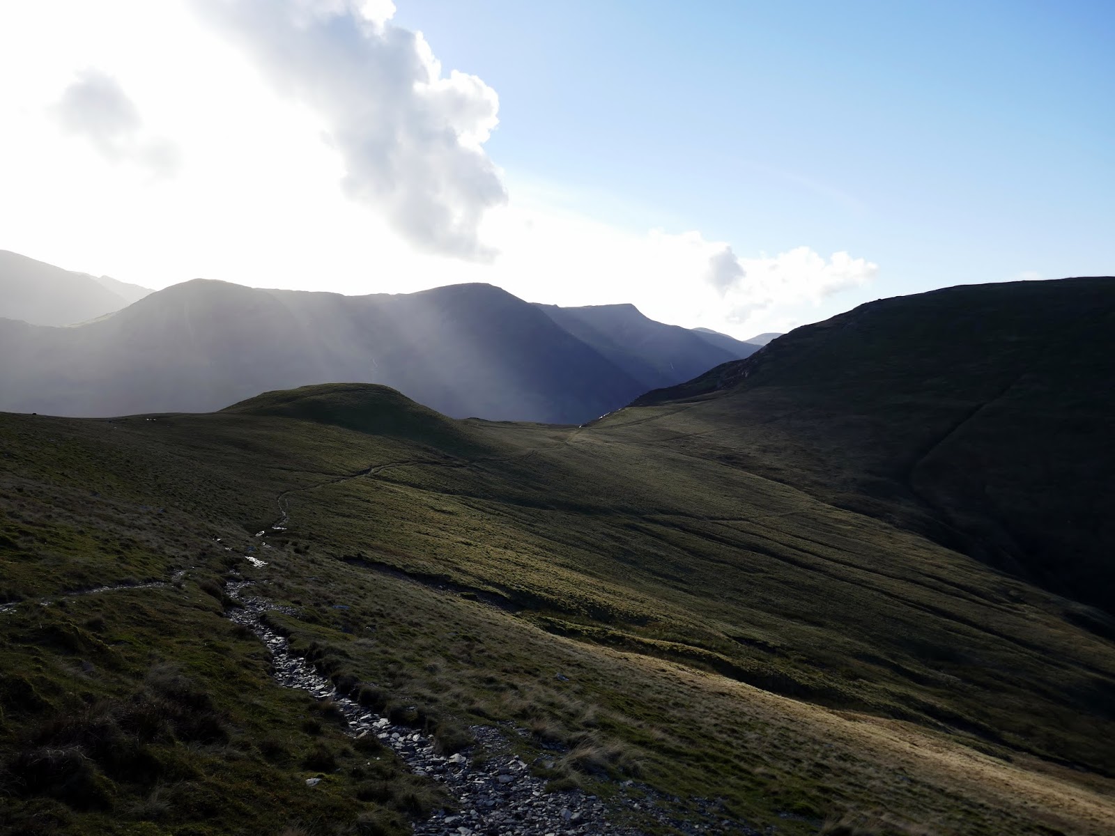 | Blue skies approach over the Scafells |