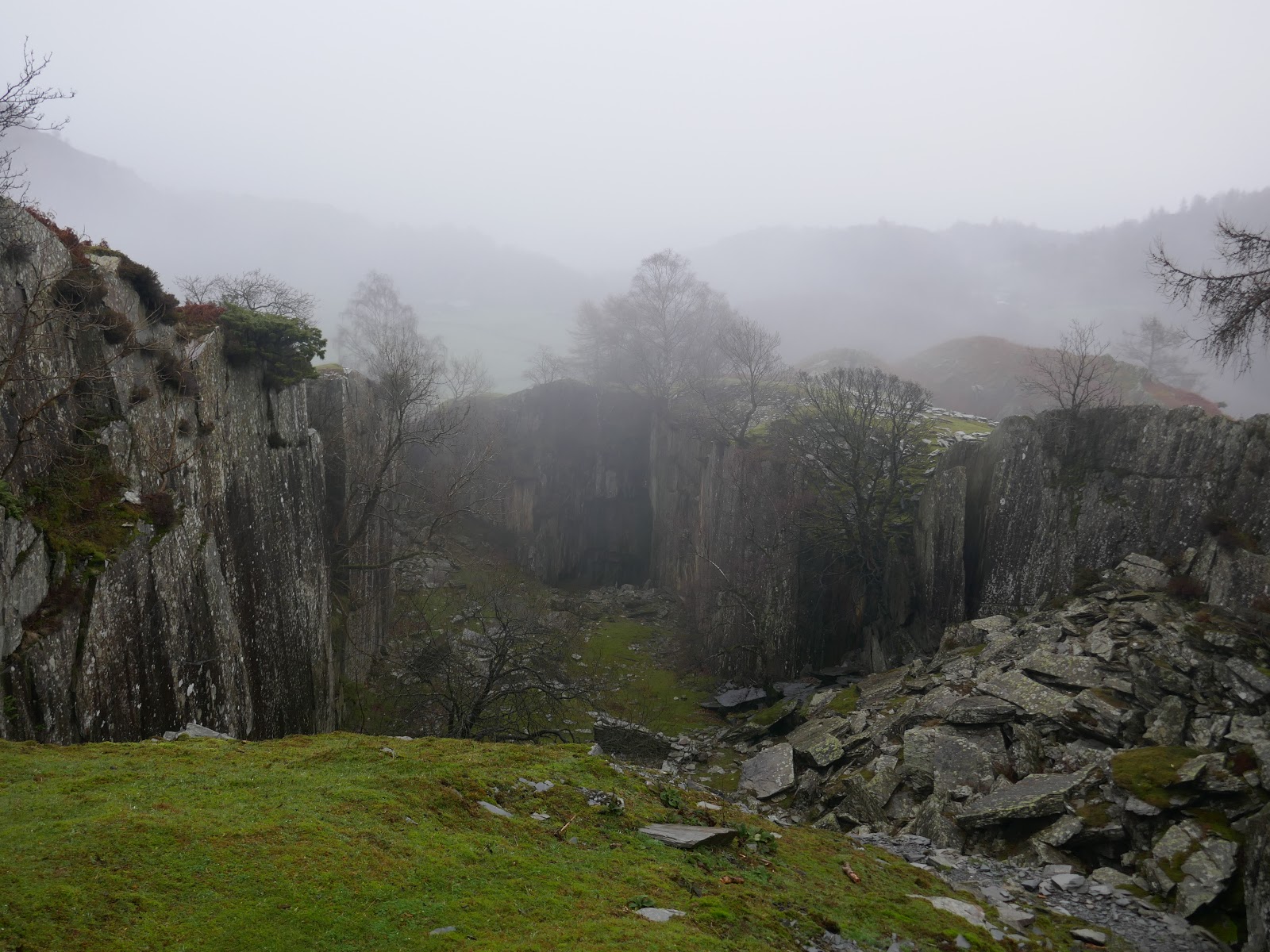 The path leads back to Tilberthwaite though we took the opportunity to cross the gill via a footbridge deep in the valley, now descending on the opposite side. This leads directly to the car park but also passes by another huge quarry which itself is interesting. Ultimately we made it back to the car, soaked through but having managed a half decent outing on the fells.