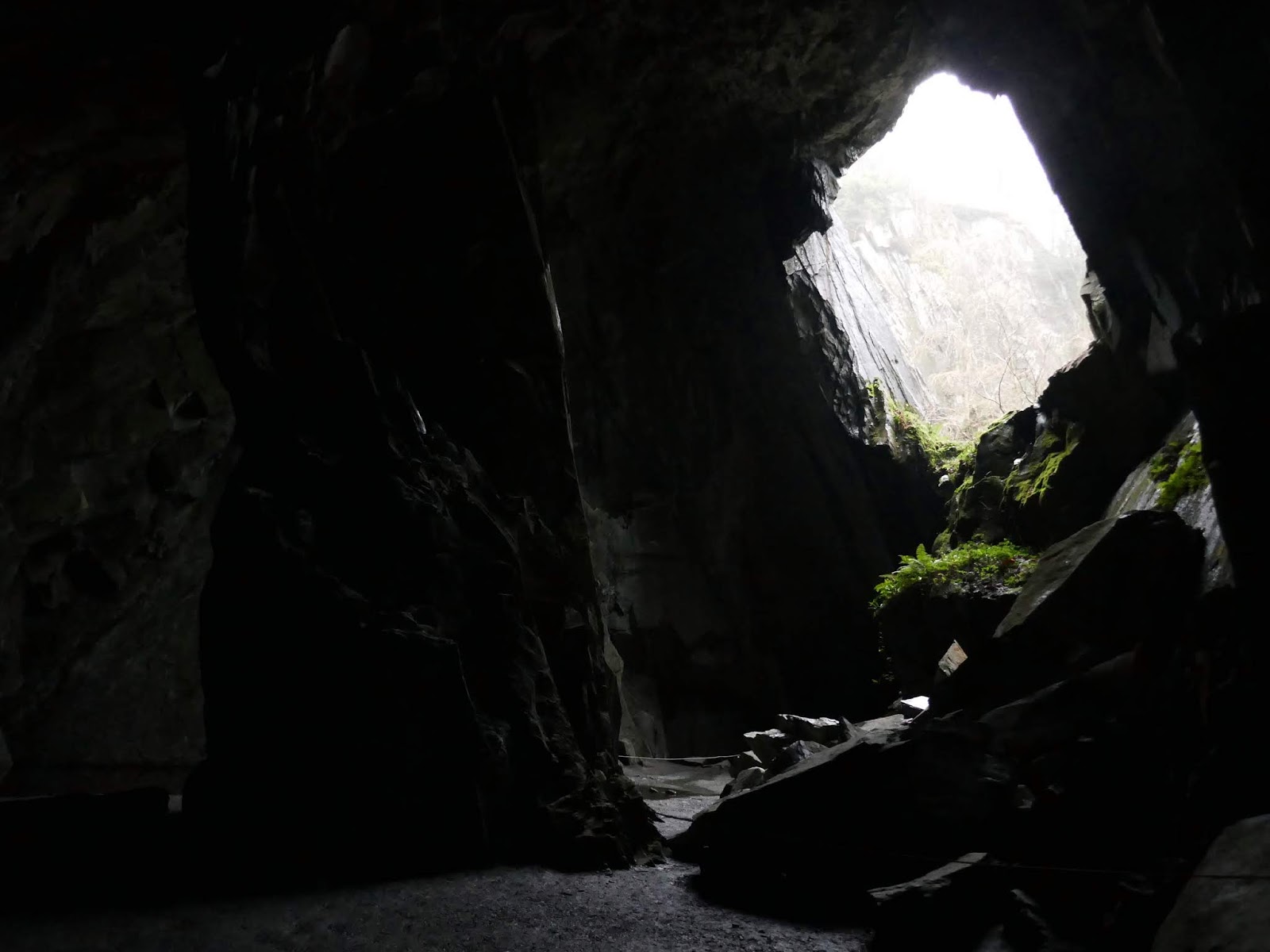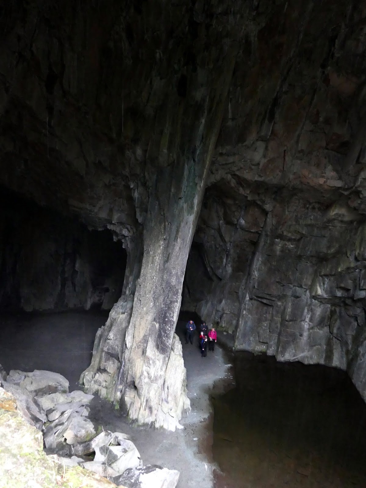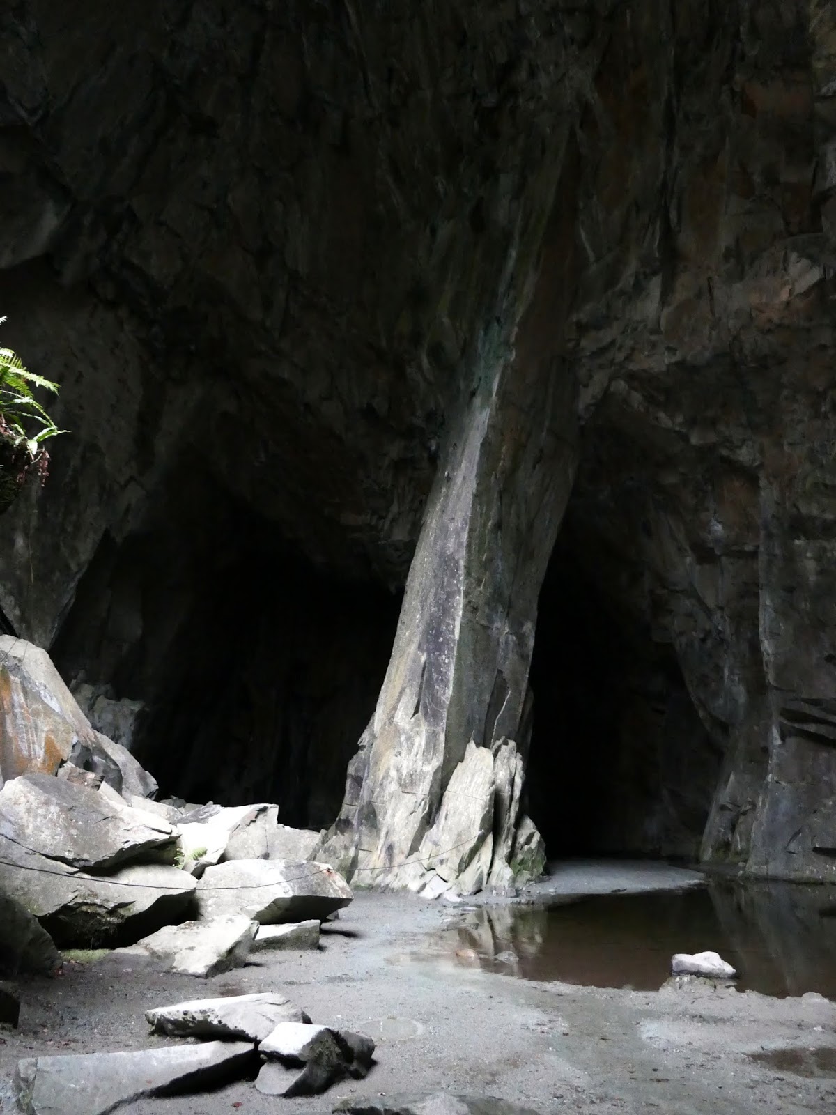 The quarry is in the possession of National Trust, accessed through a 40m tunnel. It’s not until you enter the main chamber that you can really appreciate the scale of the cavern and how it gets its name. Standing proudly in the centre is a dramatic spire of rock, deliberately left to support the roof as the quarrymen worked around it and backlit by a huge opening in the cavern roof. It’s fair to say that the cavern is every bit as impressive as a natural cave. Several other passages can be reached by wandering around the quarry though these all require a torch to explore further.