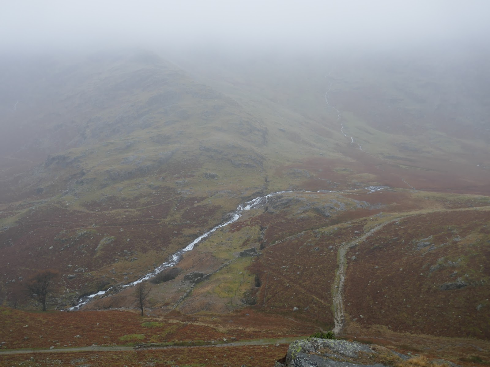 Beyond Blake Rigg is the huge incision of Tilberthwaite Gill, draining the coves east of Wetherlam. We followed the slopes of Blake Rigg’s southern ridge to meet the walkers path at Dry Cove Bottom before following the path which skirts the northern side of Tilberthwaite, giving views down into the waterfalls below. If there’s a silver lining to a rainy day its the spectacular display of waterfalls in spate.