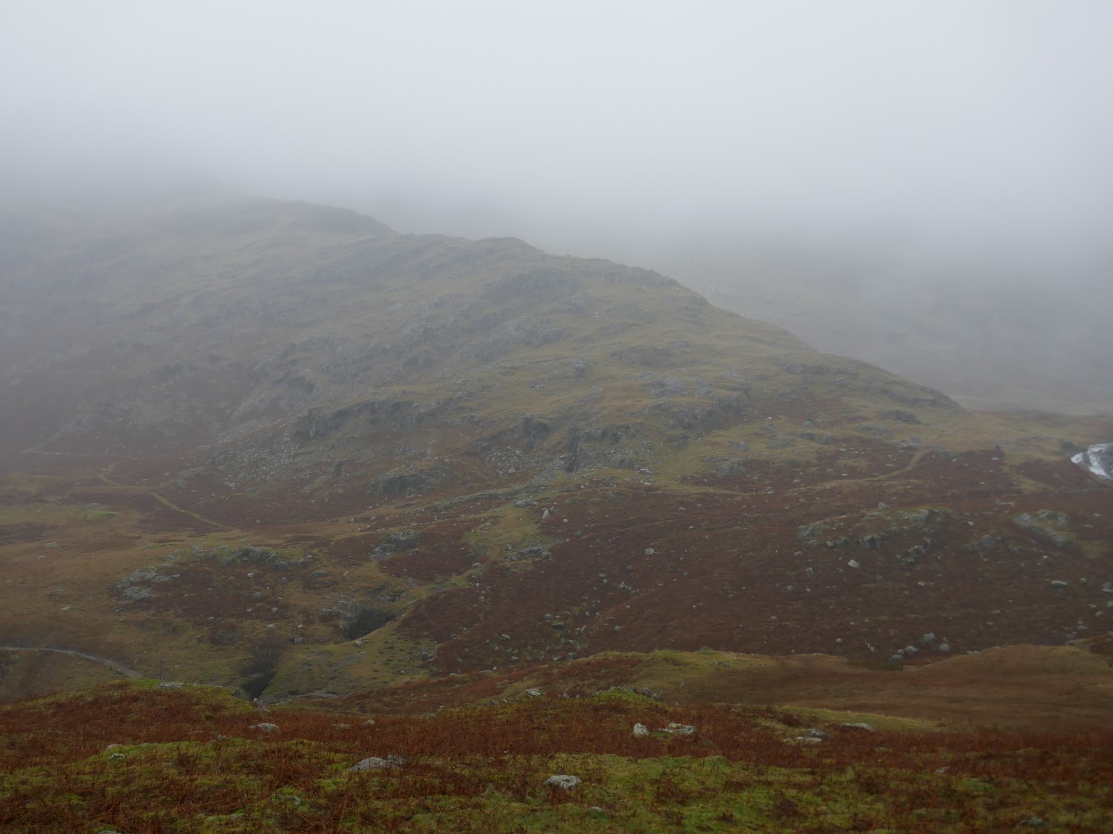 Upon reaching a junction of paths at the foot of Great Intake, we had a decision to make. Abandon the walk and head back to Tilberthwaite, or continue on to the higher ground below Wetherlam. Despite the appearance that the weather was not due to change, we decided to visit some of the minor peaks of the Tilberthwaite group of fells.