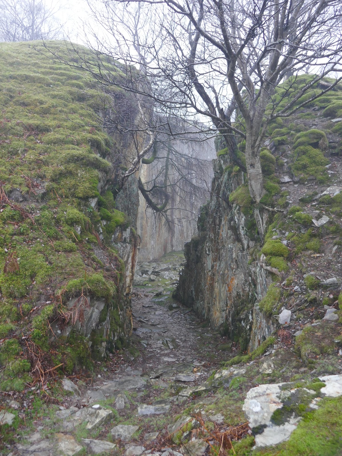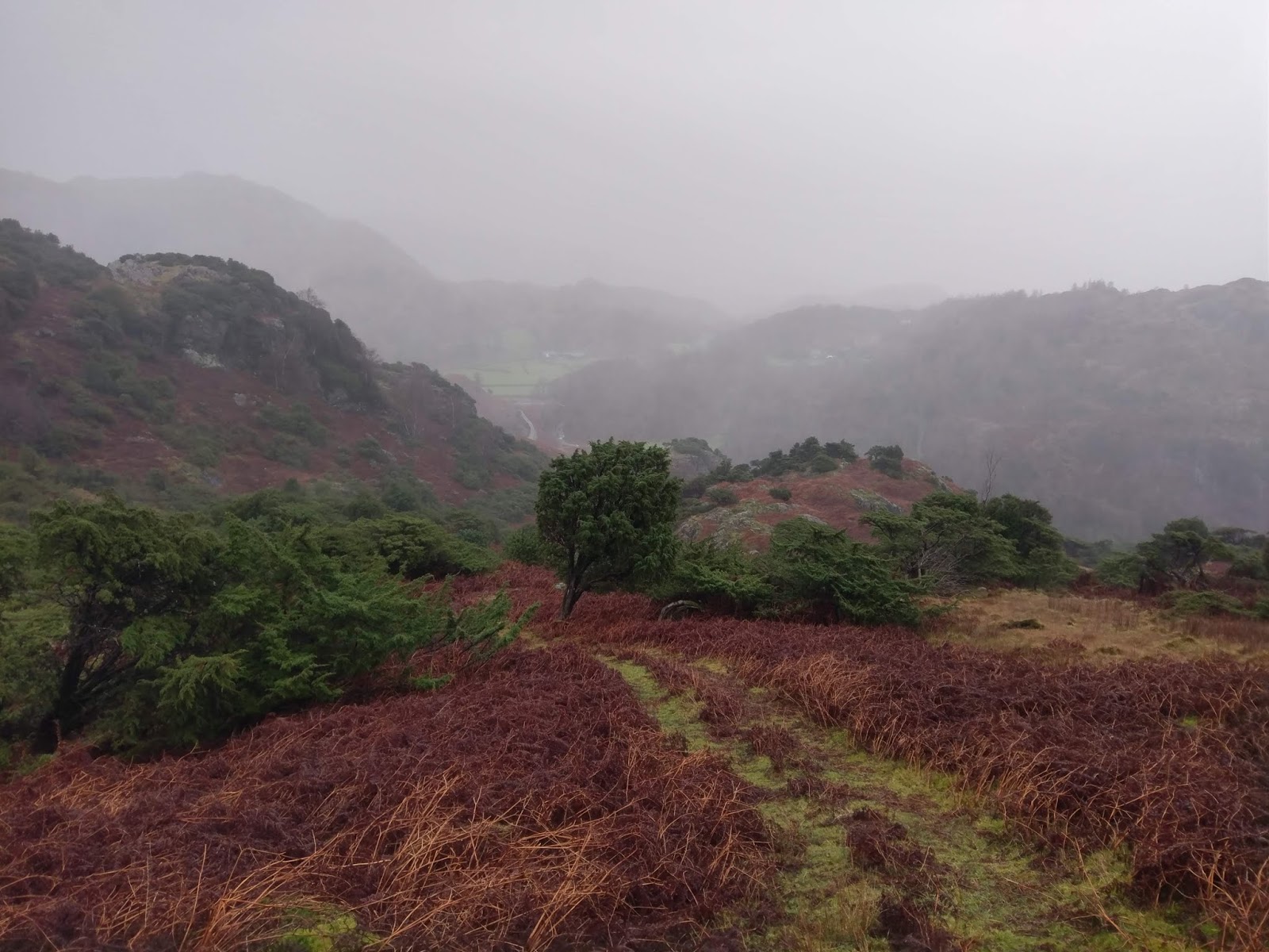 With the Yewdale fells in the bag, it was time to plot a route down to Tilberthwaite. Using a combination of luck and judgement we picked up a path heading into the old quarry workings below Goat’s Crag. Here, the path winds down through a delightful valley filled with Juniper trees to until it reaches a path traversing the Tilberthwaite valley.