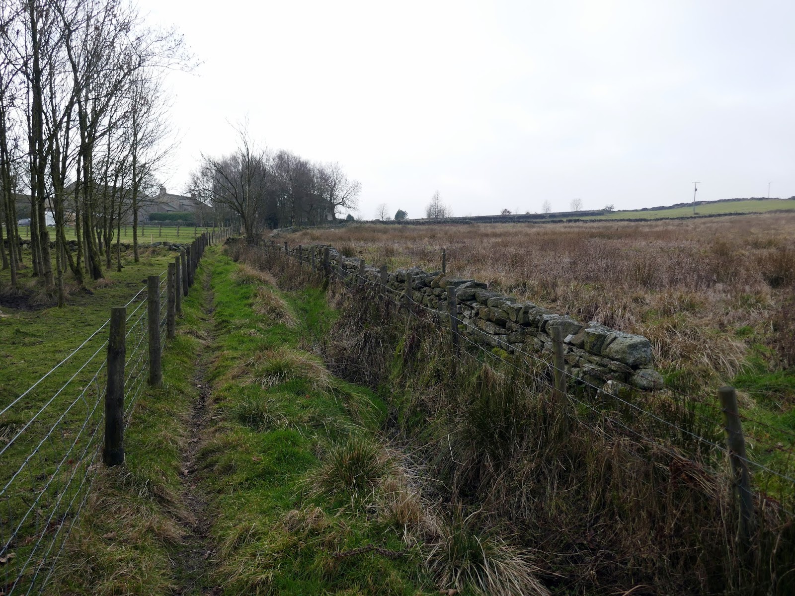 A path leads past Redshaw Hall, a C17 listed farm. We were delighted to see a Peregrine Falcon sat on a fence post. It waited long enough for me to get a couple of photos before swooping off. After negotiating the paths across Burnt Hill, we passed Spittle Ings House, ultimately joining a wide track which stretches out onto the moor.
