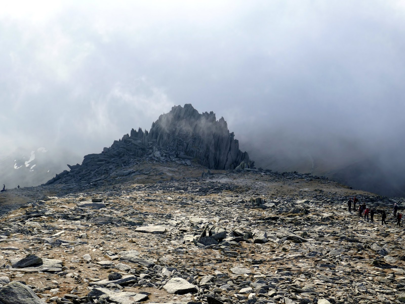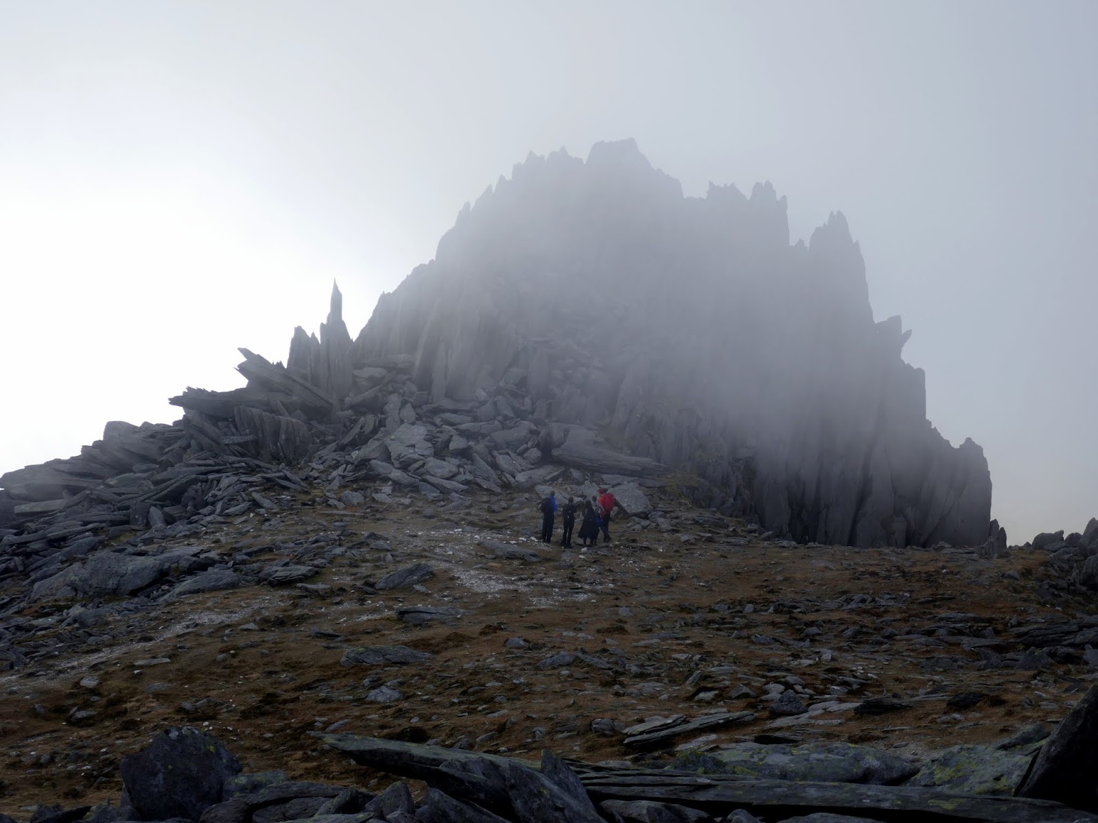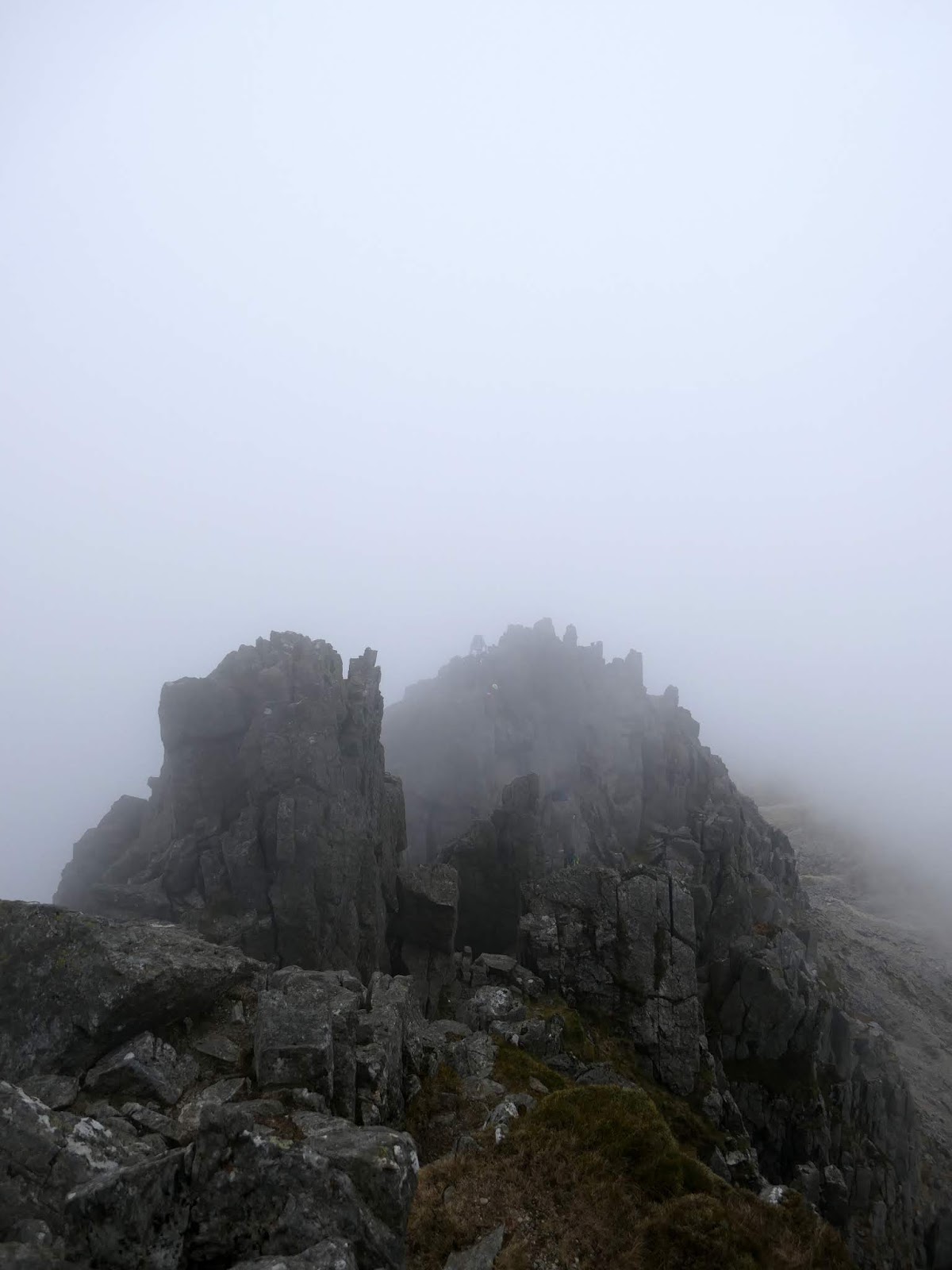 After clambering round to the other side, a short flat section of the mountaintop leads to the odd Castell y Gwynt – a spiky rock protrusion at the end of the main Glyder Fach ridge. In some circles its classed as one of the Welsh 3,000s, reason enough for another short scramble through the spires to the top.
