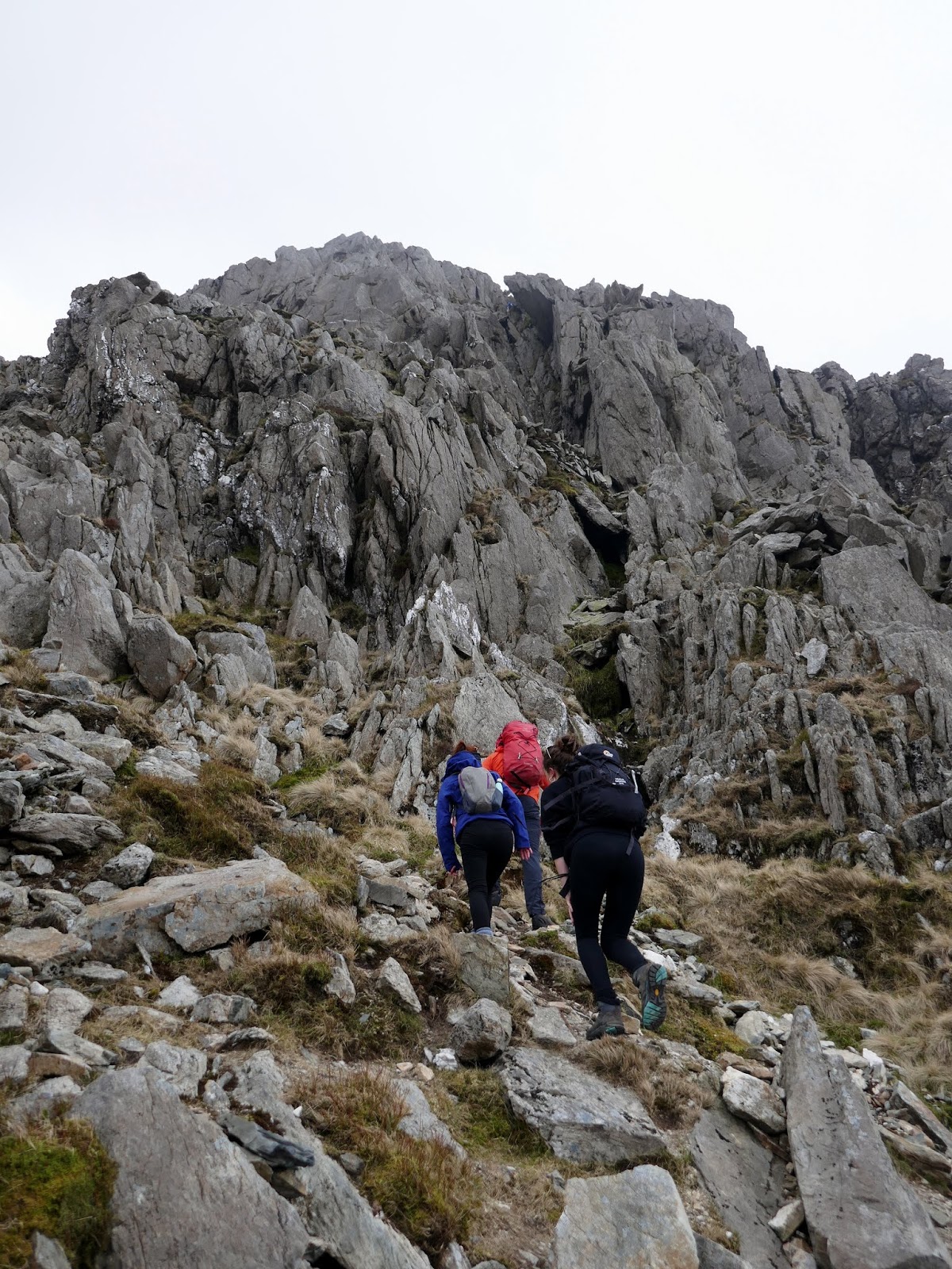 While the distance is very short (around 5 miles) it’s a tough day with hands on rock from almost the word go. We made our way from the youth hostel to the foot of the imposing Milestone Buttress, a popular haunt for climbers, home to a number of longer mountaineering routes if you are that way inclined. We would be heading the way most walkers tend to begin with, following the drystone wall from the car park before scaling a fairly obvious path that heads in an easterly direction, towards the north ridge.