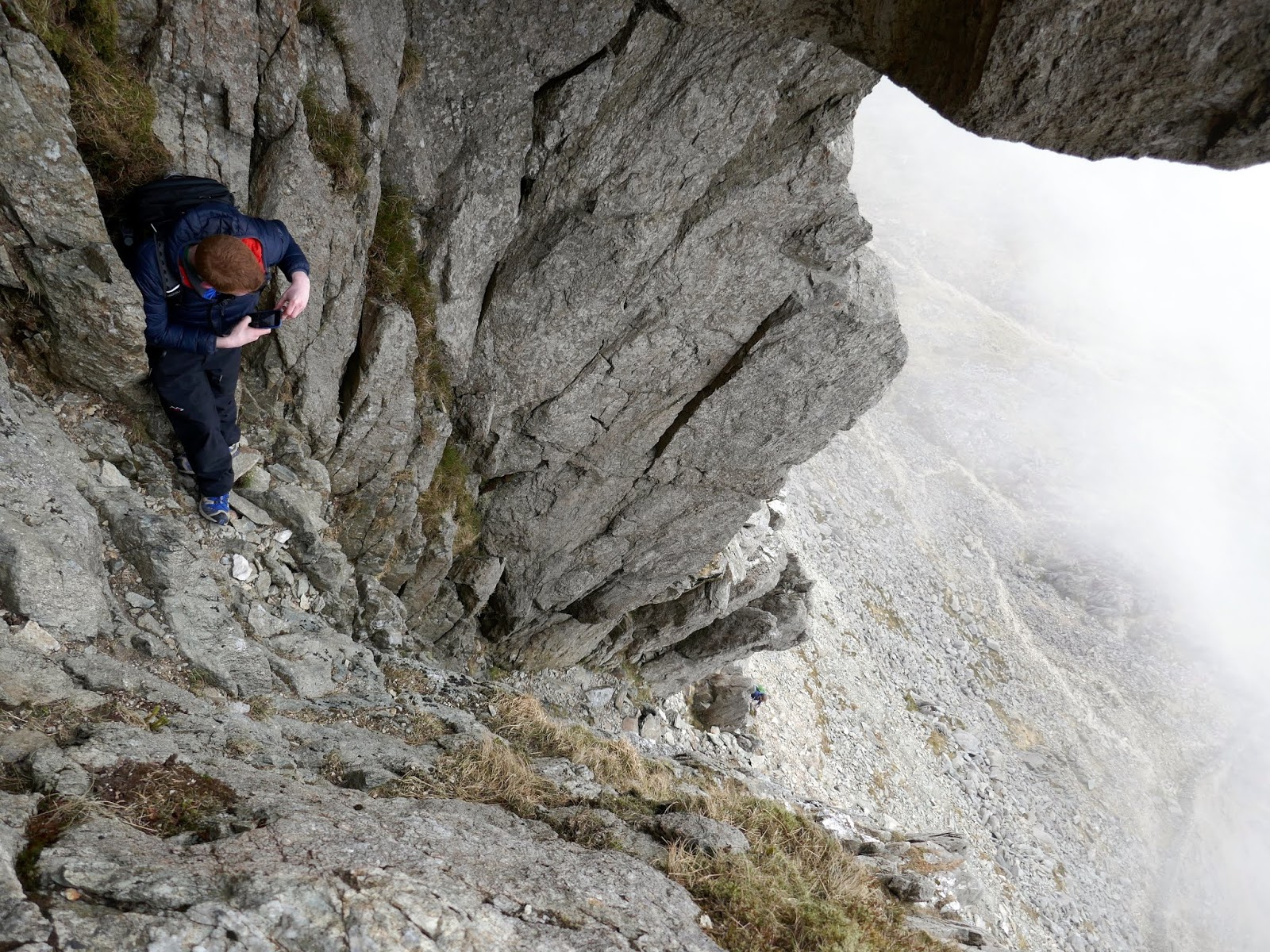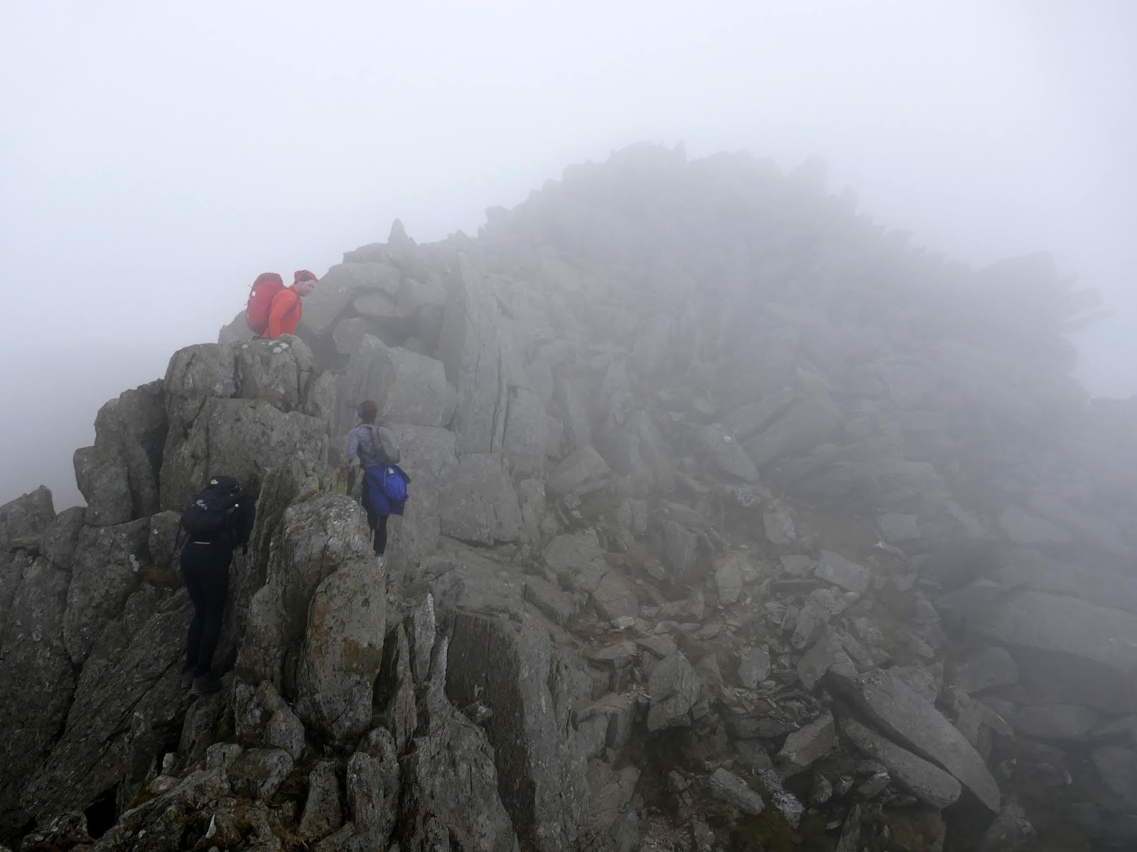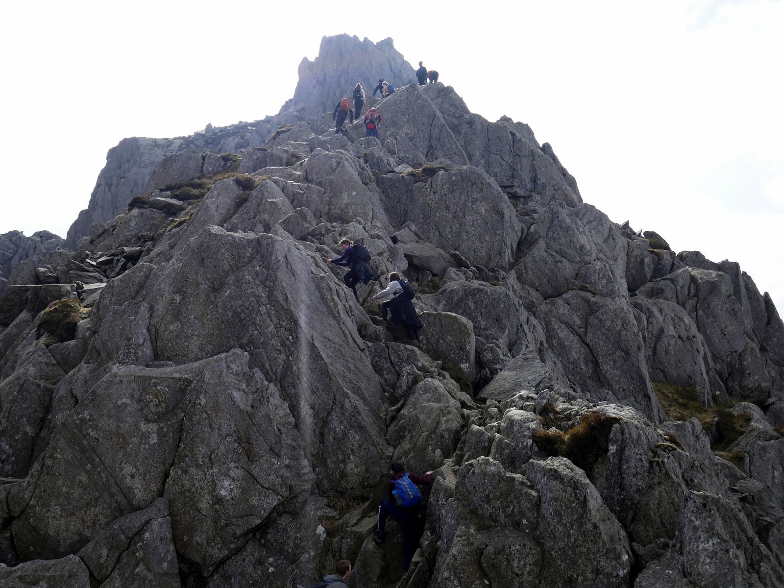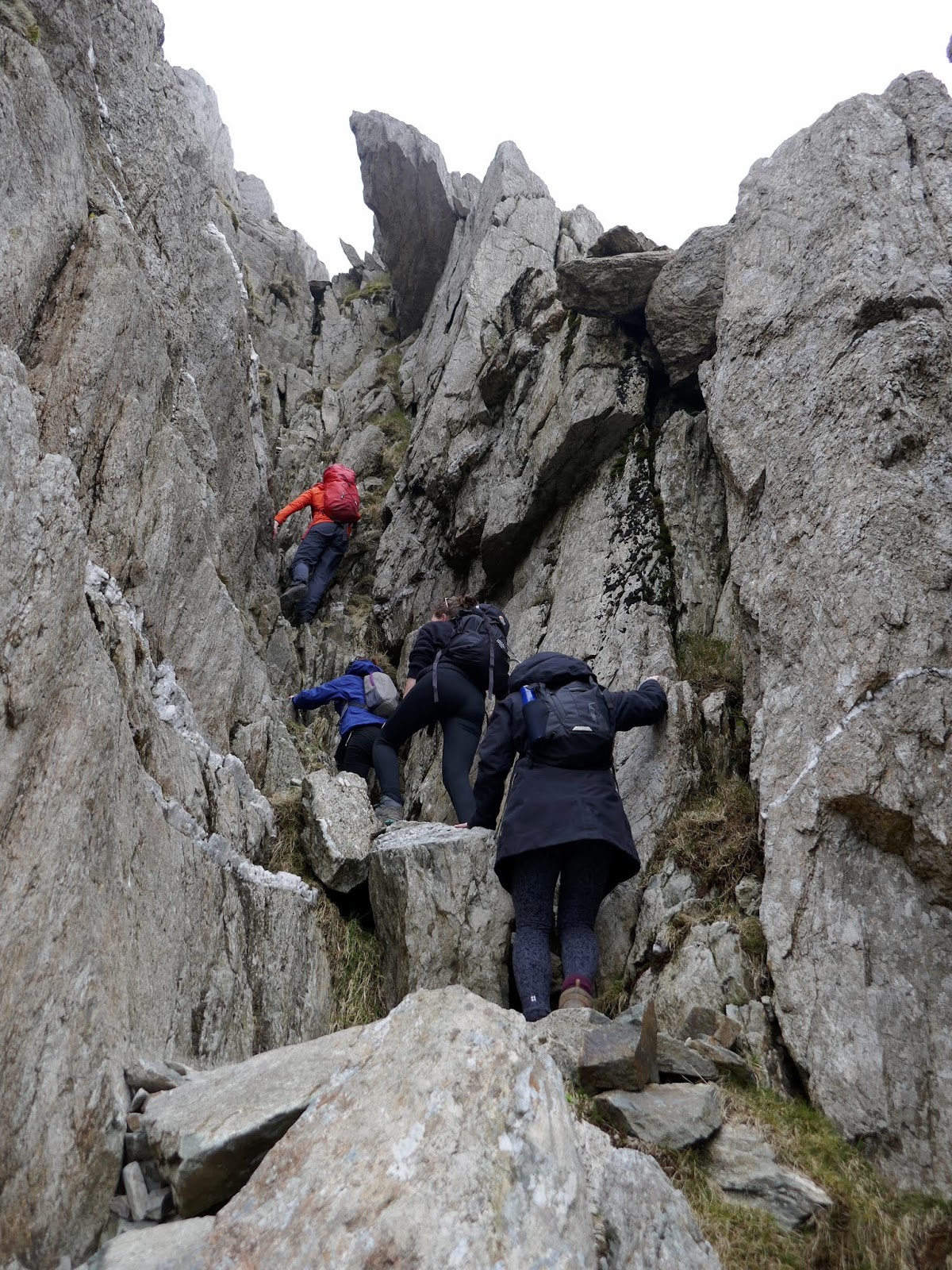 The first challenge is getting up onto the to ridge itself, achieved via one of two gullys; Sinister or Main Gully. While the name ‘sinister’ may not be overly appealing, it is, in fact, the easier of the two taking its name from the Latin for ‘left’ – it is the left-most gully of the two. You can identify it by the large, overhanging rock above it.