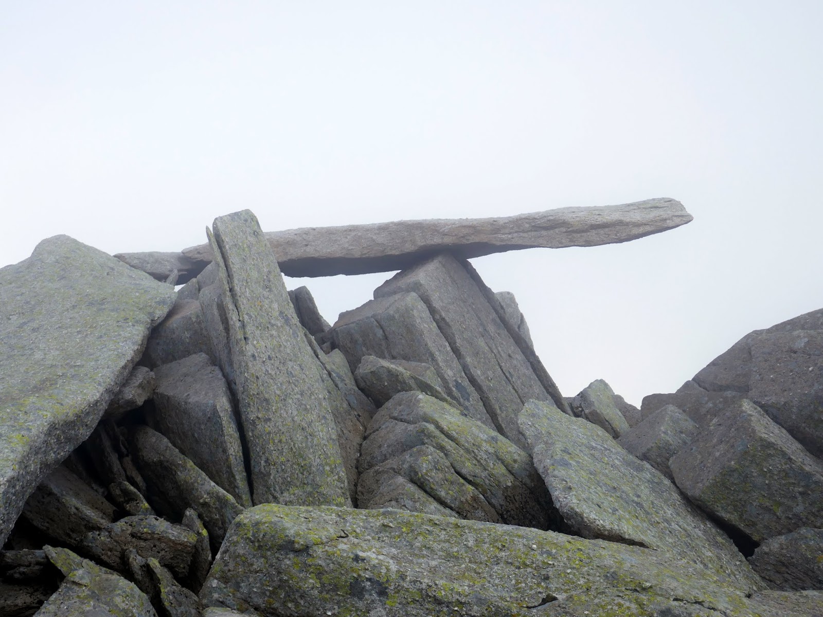 After tackling the gap a final, steep scramble is required to finish Bristly Ridge. We emerged on the summit of Glyder Fach to some wavering sunshine, the layer of cloud was lifting at just the right time. An hour earlier and we’d have been right in the thick of it. We passed the famed Cantilever; a seemingly precariously balanced slab of rock that simply begs to be photographed, usually with people on it. Glyder Fach’s summit is a short distance away but requires some additional scrambling to reach the very top.